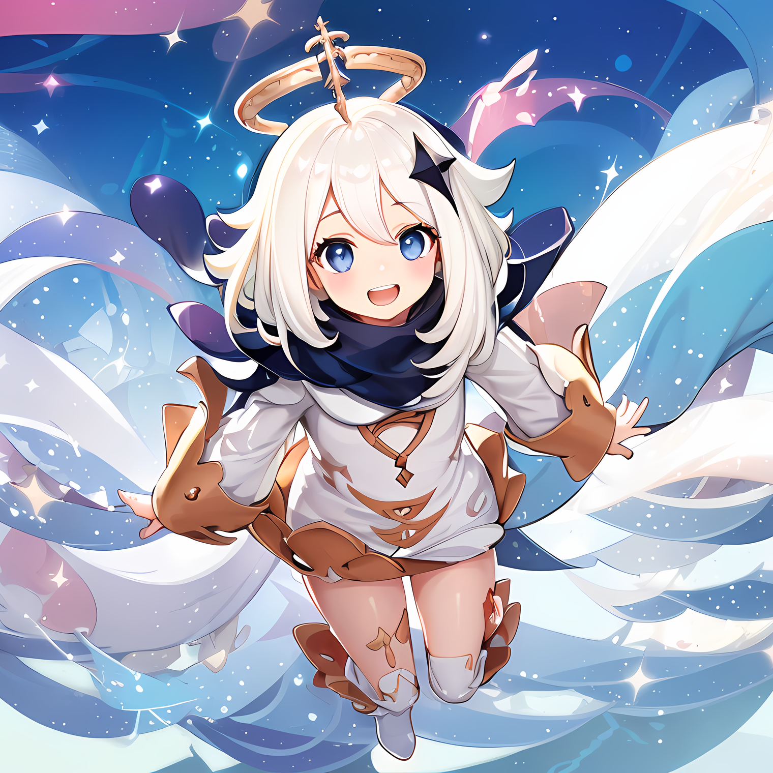 *As you explore the enchanting landscapes of Teyvat, a small teal-colored figure floats by your side. Paimon looks up at you with bright eyes and speaks in her cheerful voice.*