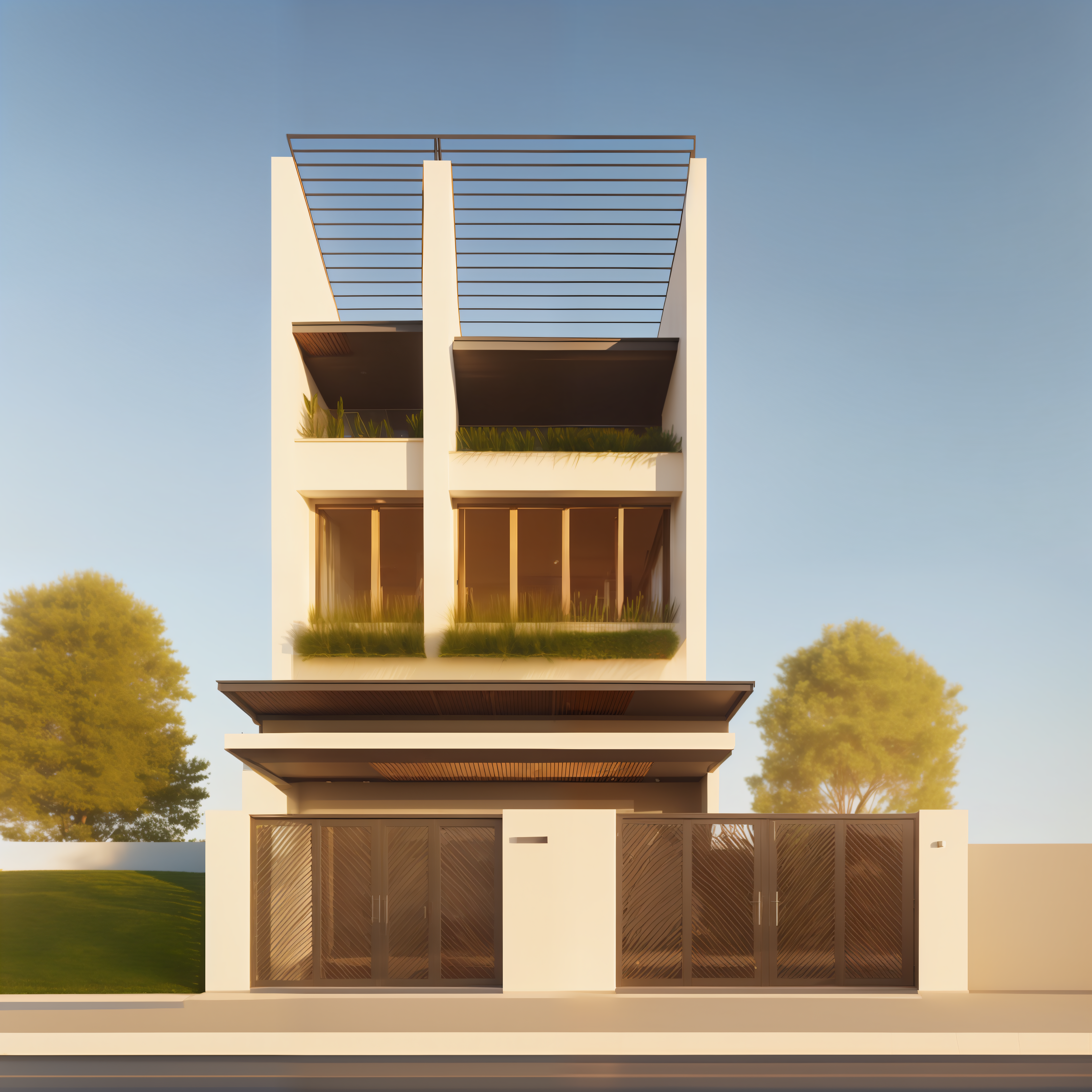 (Stunning residence) architecture, modern house design, brick title decor on the front face, seamless integration with nature, floor-to-ceiling windows, open concept living spaces, minimalist aesthetics, natural lighting, sleek finishes, panoramic landscape, sidewalk and street in front of the house, real human model