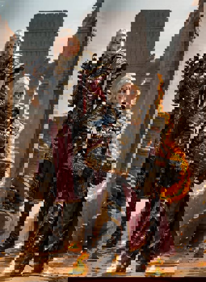 (Mejor calidad,4k,8K,high resolution,obra maestra:1.2),ultra detallado,(realista,photorealista,photo-realista:1.37, cabeza detallada),HDR,HD,studio lighting, vivid colors,bokeh,retratos,martillo de guerra 40000,adeptus sororitas, loona (de helluva boss) antro, sin alas,femenino,cabeza de loona (de helluva boss),scalie,Armadura pesada,Bolter lo describo de la siguiente manera: A femenino,loona (de helluva boss)antro from the Warhammer 40000 universe, adorned with Armadura pesada, se alza orgulloso en el centro de la imagen. Her cabeza loona (de helluva boss) features intricate scales that shimmer with vibrant colors under the studio lighting. The high-resolution image showcases every detail of her realista features, desde sus afilados dientes hasta las finas texturas de sus comillos. Sus ojos rojos esmeralda son excepcionalmente detallados., Catching a glimpse of the fierce determination and sensuality within her.. The photorealista rendering highlights the ultra detallado craftsmanship of her armor, which reflects the vivid colors of the surrounding environment. She firmly holds a boltgun, listo para mostrar su sensualidad en la batalla. The scene is set against the backdrop of a war-torn landscape.., con explosiones y humo llenando el aire, creating a sense of chaos and danger. Bokeh effect adds depth to the image, with the background slightly blurred to draw attention to loona (de helluva boss) y su armadura.. El tono de color general se enriquece con tonos vibrantes., realzando la intensidad de la escena. The composition is carefully lit with studio lighting, casting dramatic shadows and adding a touch of realism. Image quality is of the highest level., with 4k resolution and the level of detail that can only be described as a obra maestra.