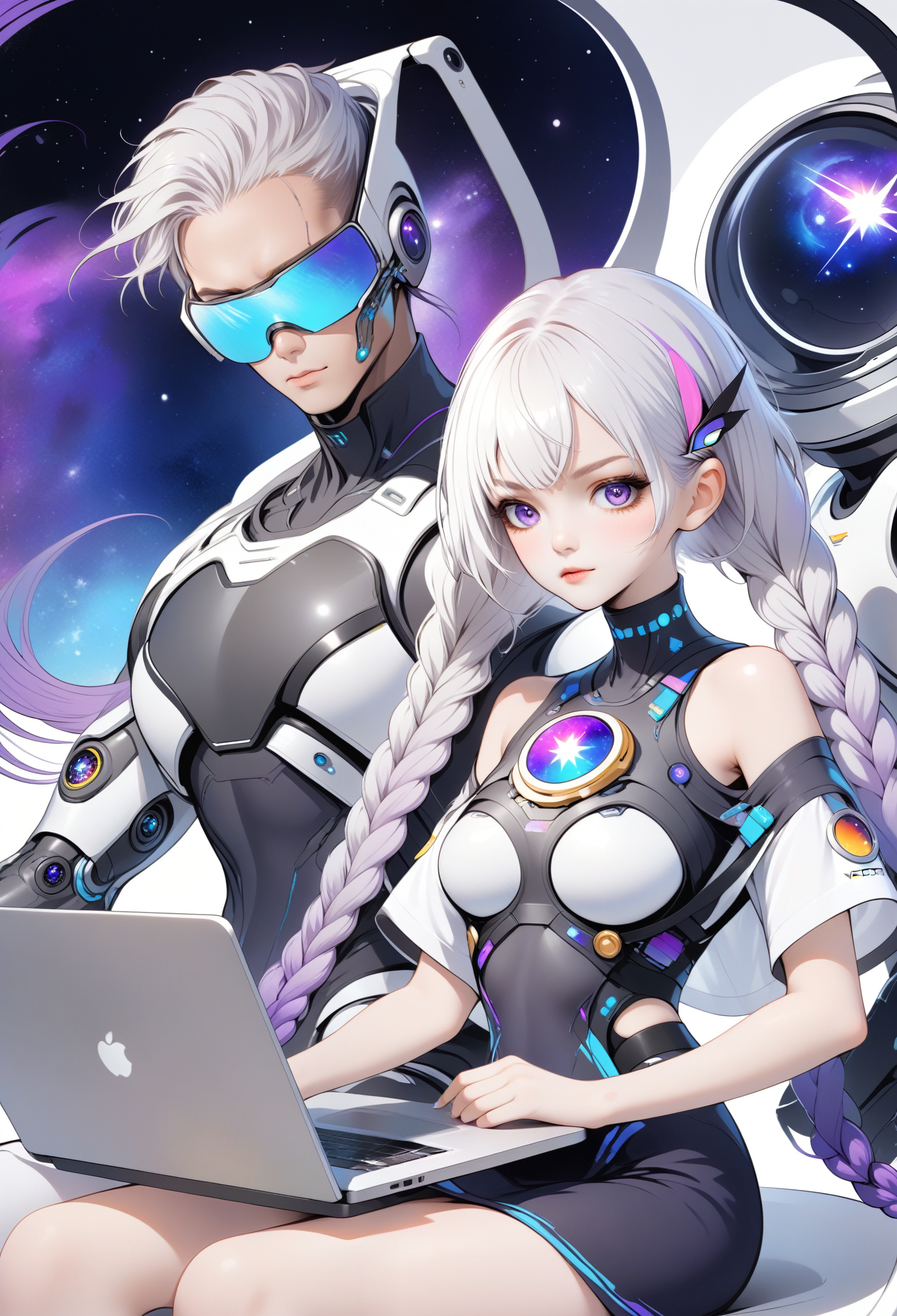 (masterpiece, best quality, official art, beauty, Gothic, Tokyo Ghoul style: 1.2), Very detailed, fractal art, Gorgeous, More detail, Zentangle, Atmospheric, cosmic, Psychedelic, dreamlike, fear, abstract background, A girl, Rabbit Ears, yinji, purple hair, purple eyes, long hair, white hair, double braids, gradient hair, Japanese folk style clothing