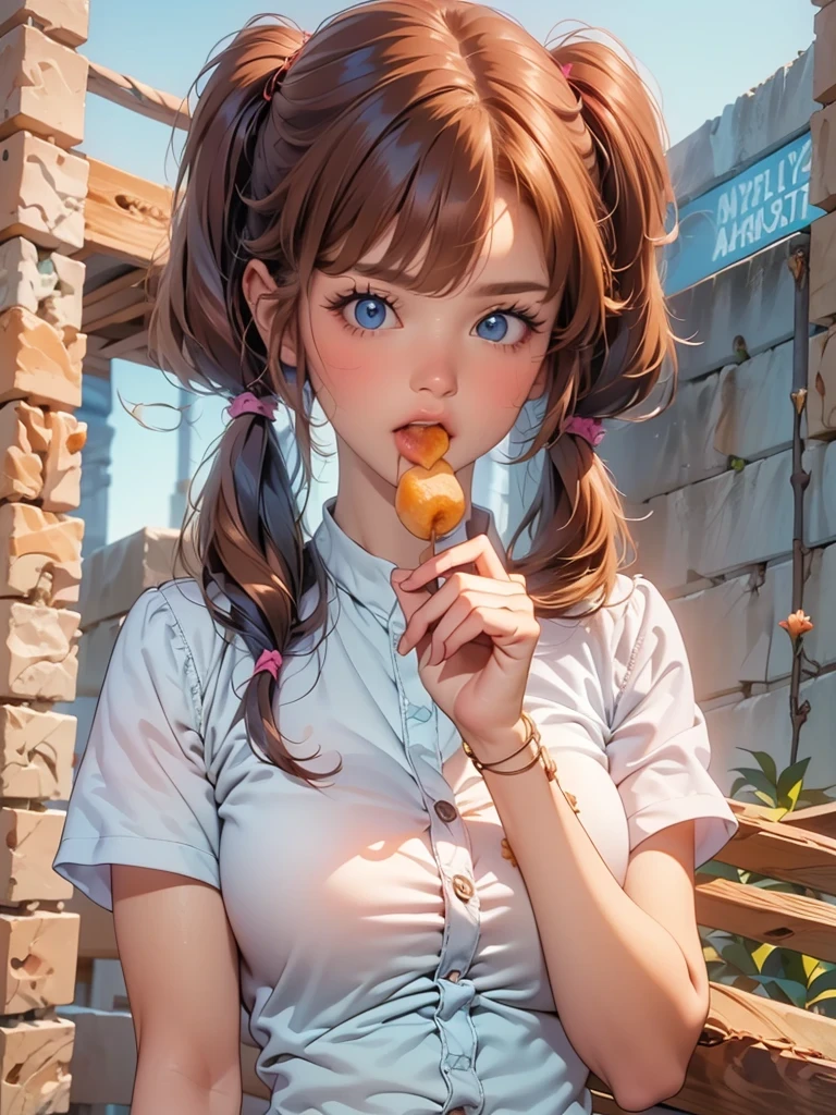 whole body, complete plan:1.3,(1 beautiful young woman:1.4, ((alone)) with twin pigtails hairstyle beautiful hair perfect hands 5 anatomically perfect fingers:1.4), dynamic pose ,Modern clothing, animated style, detailed face, pretty eyes, cute expression, hyper detailed and smooth soft lighting, in front of the camera, detailed representation, vibrant colors, elegant, Capricious, Very detailed, 8k, HD
