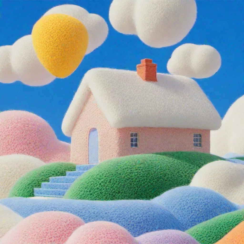 Colorful wool flower, cute, fluffy, dreamy style. 3D,C4D,oc rendering, mixer style, soft light