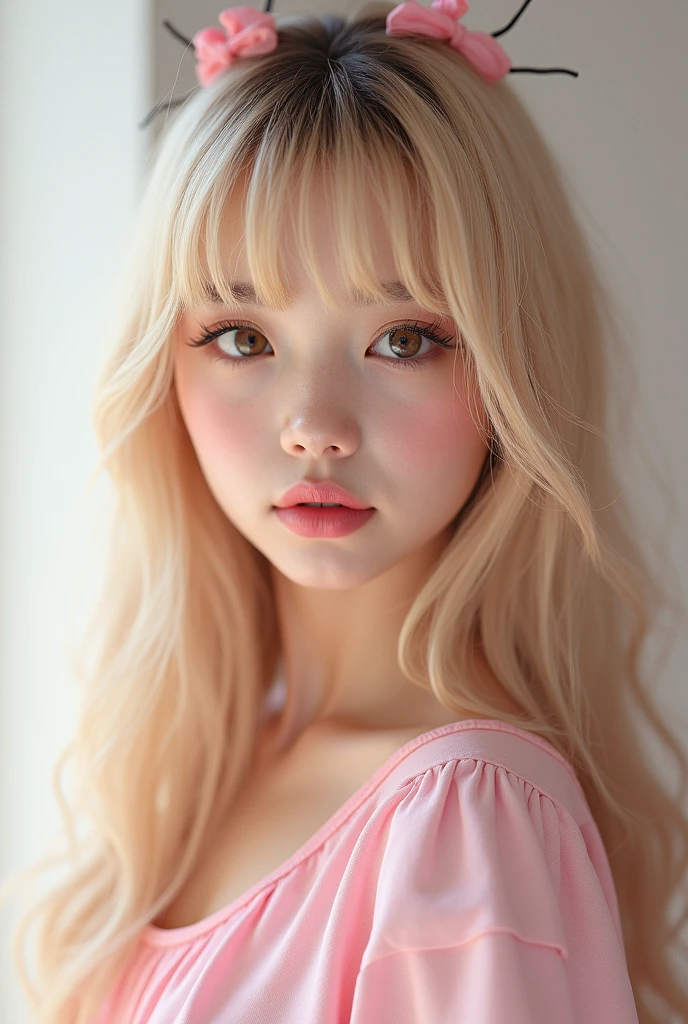 Photographically, very detailed, Very real, hyperrealism , super realistic, best quality,(masterpiece, soft lighting, Stylish eyes with attention to detail : 1.2), a pretty young girl,(cute), sleeveless, sheer off-the-shoulder tutu,Can you loosen the corset strings on my back?,Fashion studio white background,She is standing,( Full Body Portrait :1.6), no makeup in the coal mine,Highlight your lips,Big Mouth , Thick lips, brown eyes ,Fuller lips, glossy lips in the ruins of the city, My lips are shiny with lip balm , blonde hair, (Perfect oval for big eyes), blue beautiful perfect eyes , (Charming young woman:1.3), (Charming:1.1),