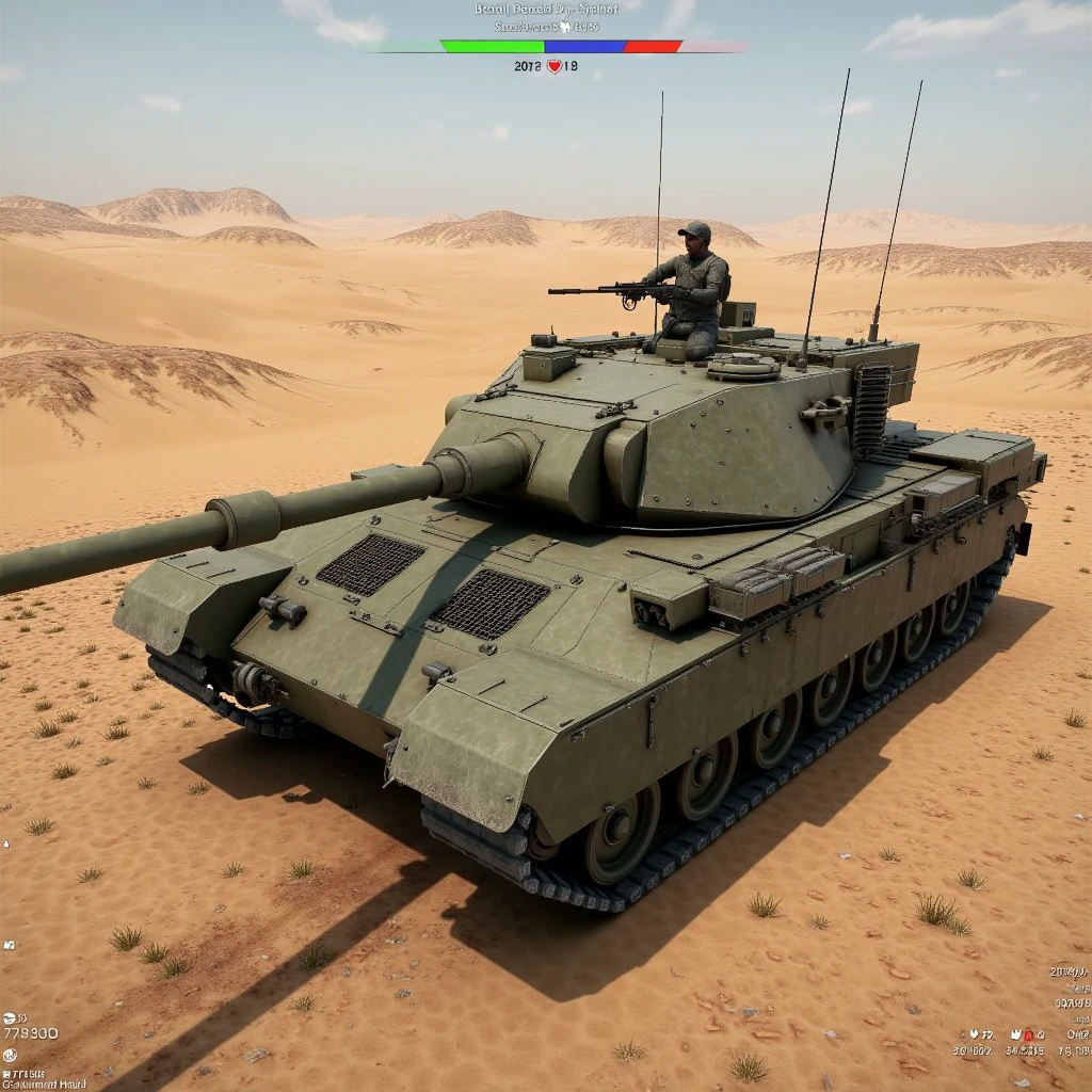 "Realistic, seen from above, War tank locomotive, branca powered by a large single track, armada com um pequeno canhão longo de calibre 120 mm em cima dThe locomotive, futurist, powered by a large single track de cor branca. dusty due to the sandy terrain, reddish color, terreno Realistic com pedras e areia com coloração avermelhado o solo de Marte, The locomotive, with technological details and evident mechanical structures, é robusto e de design futurist, and bright blue or red LED details. The locomotive possui mecânicas visíveis motores e sensores avançados. Its metal structure and reinforced panels. dThe locomotive tem um grande cilindro ao longo da sua estrutura, powered by a large single track, Your movements raise a trail of dust"
