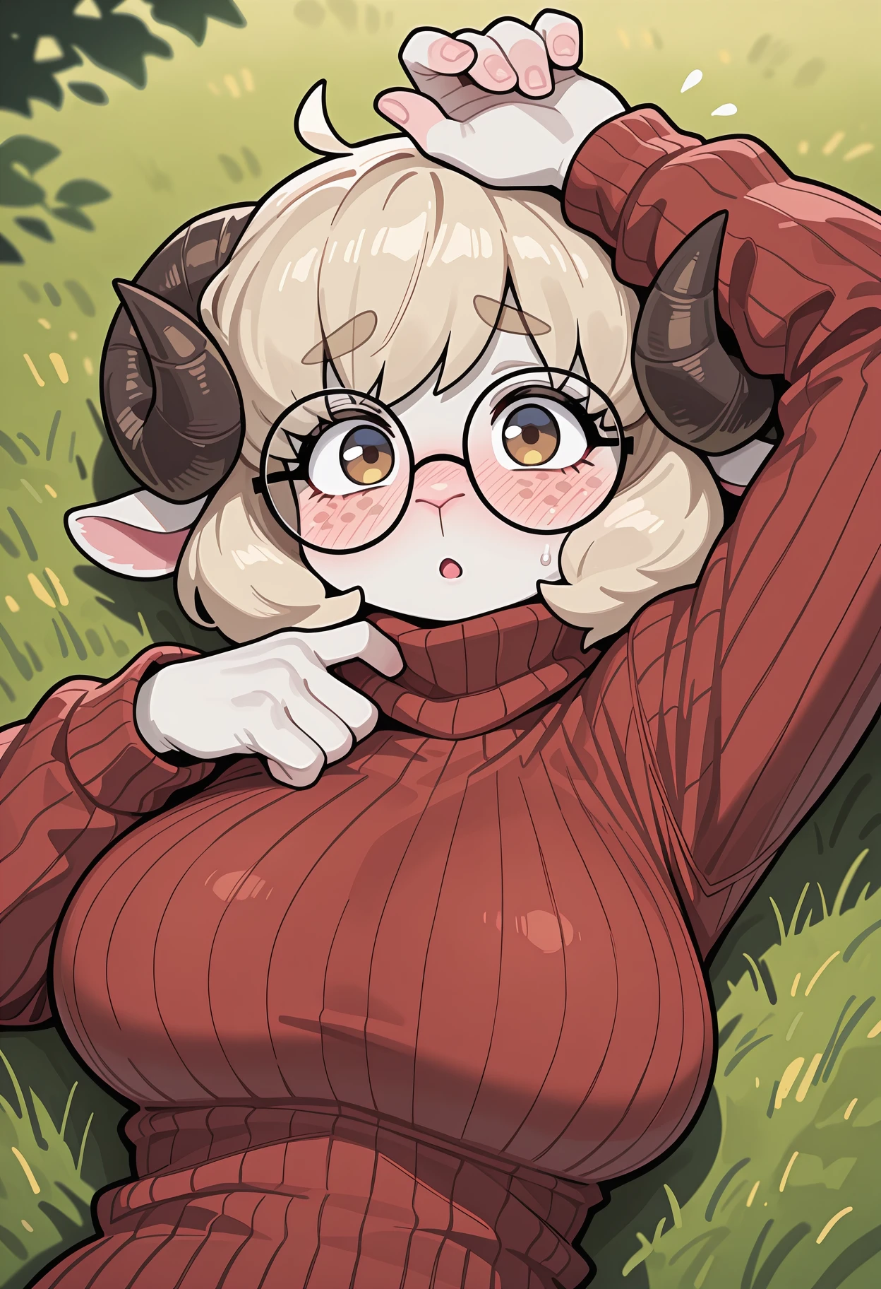[GrimV1♂️] [Experimenting LoRa Model] - (by skweekers), solo, thin male, GrimV1, anthro, dark furs, red curved horn, red pentagram on forehead, long_snout, big-pupil, glow-pentagram, sitting in top-building, (wearing tan cargo pants), (wearing a black t-shirt), wearing an open black jacket,