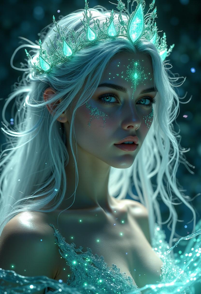 A mystical animal with a translucent body, aura of light, potency, fangs, claws, armored , red, blue, purple, orange