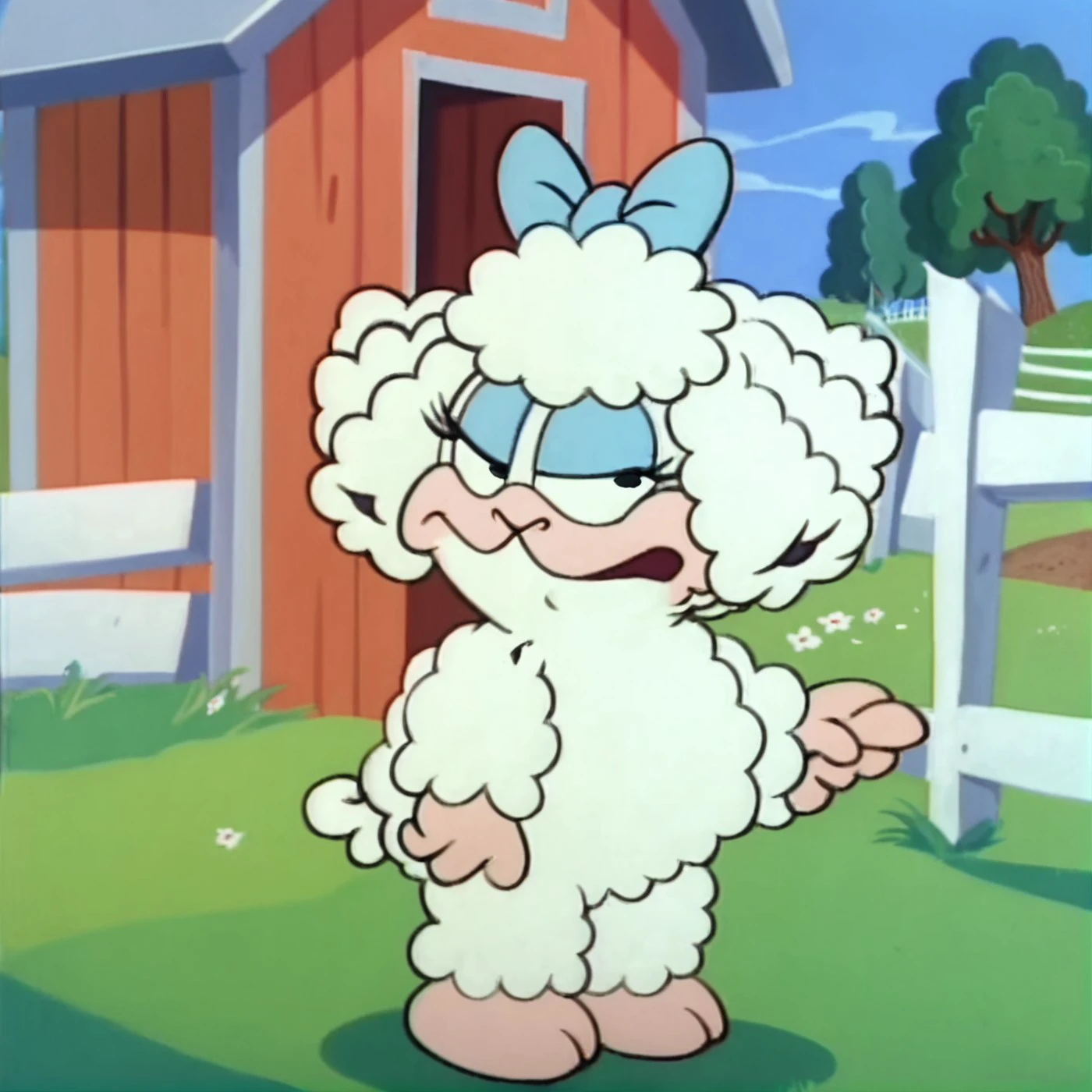 lanolin_sheep, lanolin_us_acres, sheep girl, furry female, official art, official style, lanolin_sheep, lanolin_us_acres, sheep girl, furry female, solo, open mouth, bow, smile, no humans, pointing, official art, official style, highly detailed, high resolution, detailed background, detailed clothing, perfect composition, masterpiece, no human, good