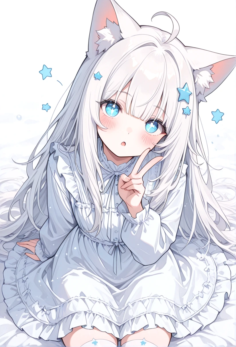 (masterpiece, detailed:1.2)1 girl with long white hair and glass looking at the viewer, beautiful blue eyes, detailed portrait,