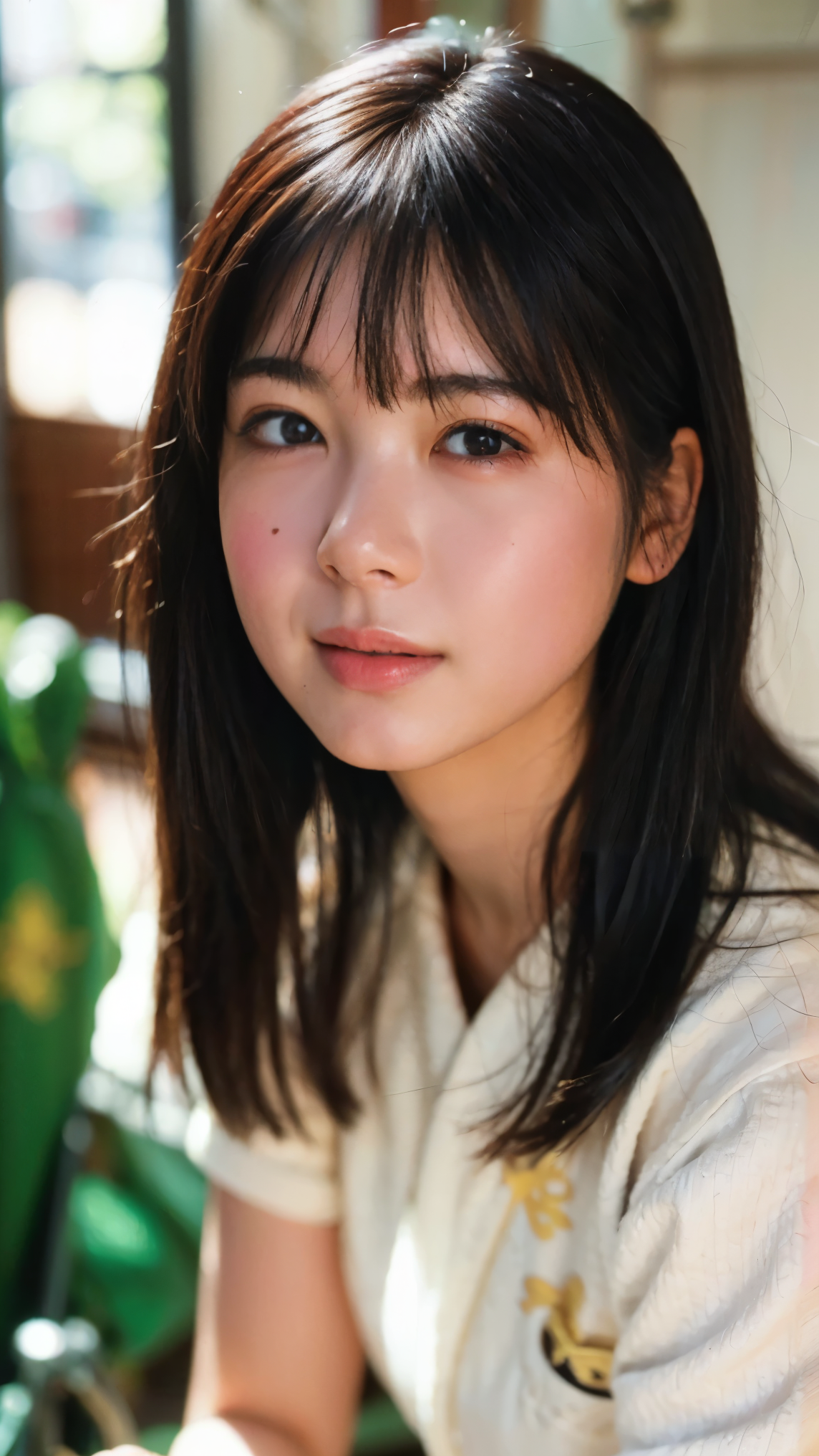 Female idol, Beautiful woman , Flowing hair, perfect skin, Exquisite Five Officers, serene expression, Stunningly Beautiful, with fine details, soft lighting, Natural Background, Photo Realistic, Height Detail, High Quality, bright color, Movie-like atmosphere, 20 Years Old Japanese Girl, alone, Super Mini Round Skirt, school uniforms , cute, (round face), Thin lips, (Gives a Natural Cheerful Look), from below, (Knee Flat), (Shut up), Swaying Hair and Skirt in Strong Wind, (Dynamic Pose), side sweep the sea