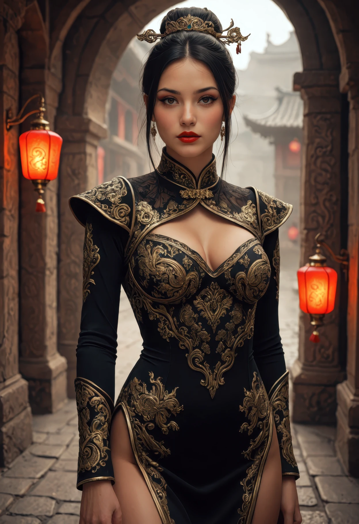 Ultimate Masterpiece、top quality、Oil painting、Rembrandt style、Thick Brush Strokes、A young aristocrat man with a dignified and firm expression、Half Brad Pitt and Johnny Depp Style、(Extended Beard)、(Extended Mustache)、tousled hair、Long saber with lowered hand、(dirt、Pain、Worn、tattered、dark red aristocrat costume decorated with retro gold embroidery:1.2)、(Standing in a palace shrouded in flames that collapsed in war:1.3)、Medieval Netherlands、Heavy Oblique Painting on the Background that Seems to Fall Off the Wall、Flames burning like wrapping around a painting、Carved Marble Pillars、Burning Romanesco Wall、The war outside the window、Full Body、Feeling out of place、Doomsday Feeling 、rich dull colors、high contrast、Darkness、明と暗を捉えたRembrandt styleのライティング、Wide-angle camera work focusing on men、Academy Award Winning Film
