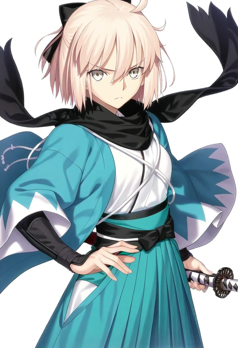 ビル群で血染めの焦げて折れた日本刀を持ったdark haired少女が火の中を歩いている smoke can come in from liquid dark haired Hakama sad