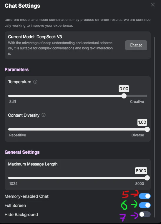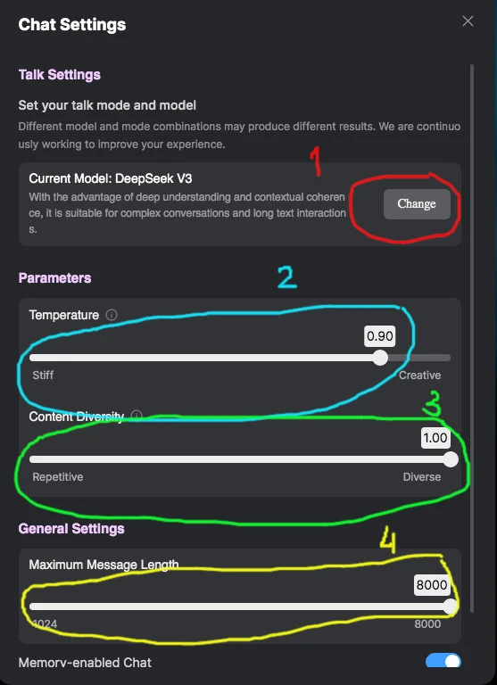 5. Memory-enabled Chat. I recommend to switch on this toggle.