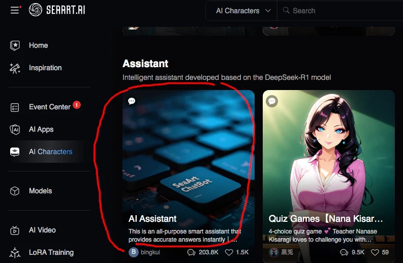 To use DeepSeek, ChatGPT, Claude or qwq-plus you can click AI Character on the left side of the menu if you are using computer at SeaArt