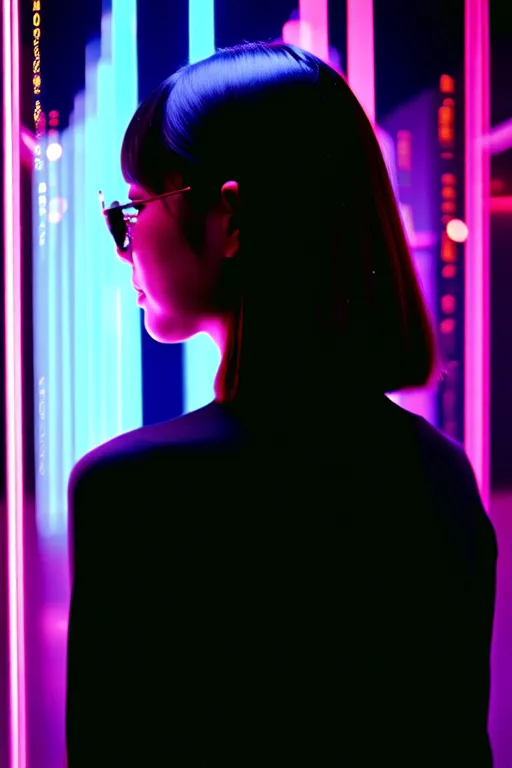 (e.g., "Beautiful Japanese woman with short hair, wearing glasses and a tight black suit")