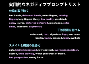 AIに「画像に表示させたくない要素や特徴」を伝えます。その効果は主に3つのポイントにまとめられます: