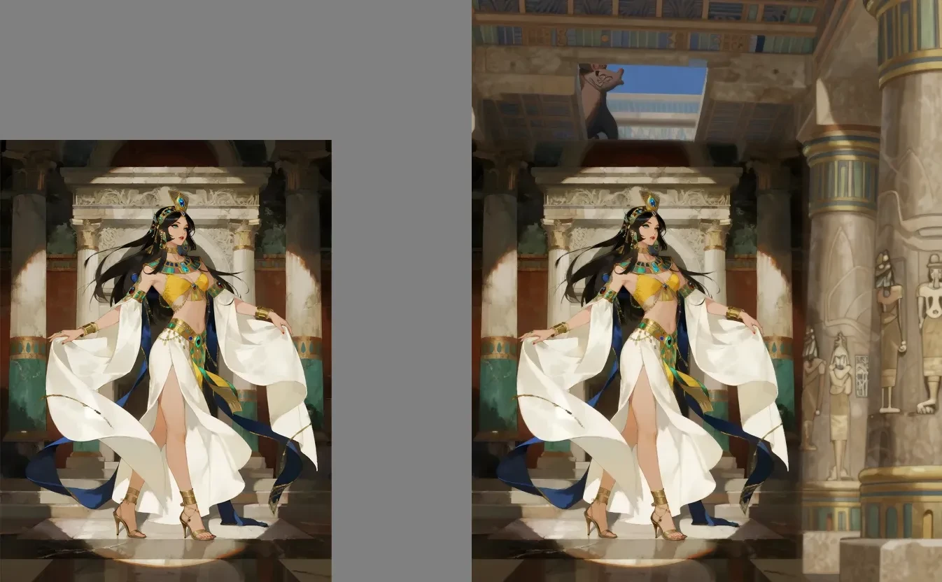 As shown in the figure: When we find the outpainting effect is too stiff or misaligned, we can appropriately adjust the denoise value between 0.85 - 1.0.