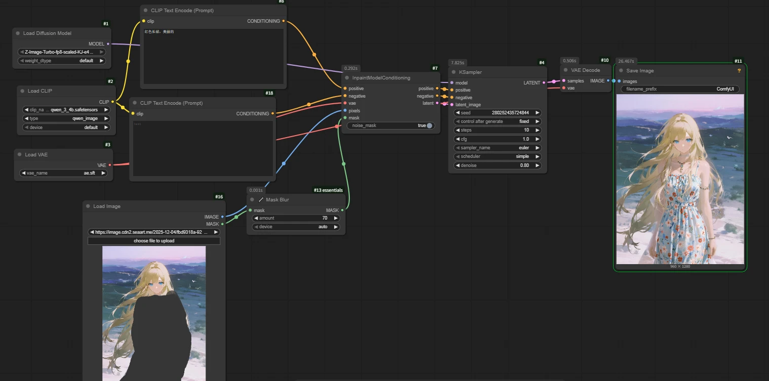 How to connect: Right-click the image area in the Load Image node -> Select [Open in MaskEditor] -> Paint the area you want to modify. Remember to click Save after finishing the mask painting.