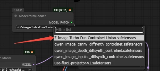 2.Select the ControlNet model in the [ ModelPatchLoader node ].