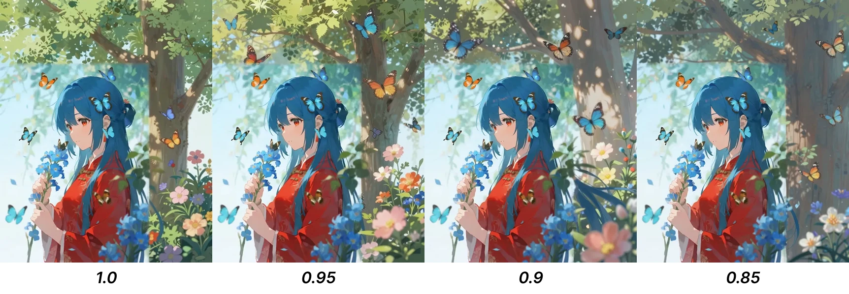 We can see that 0.85 maintains the style and outpainting effect best.