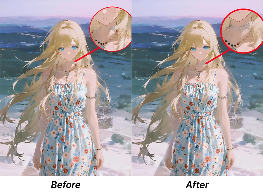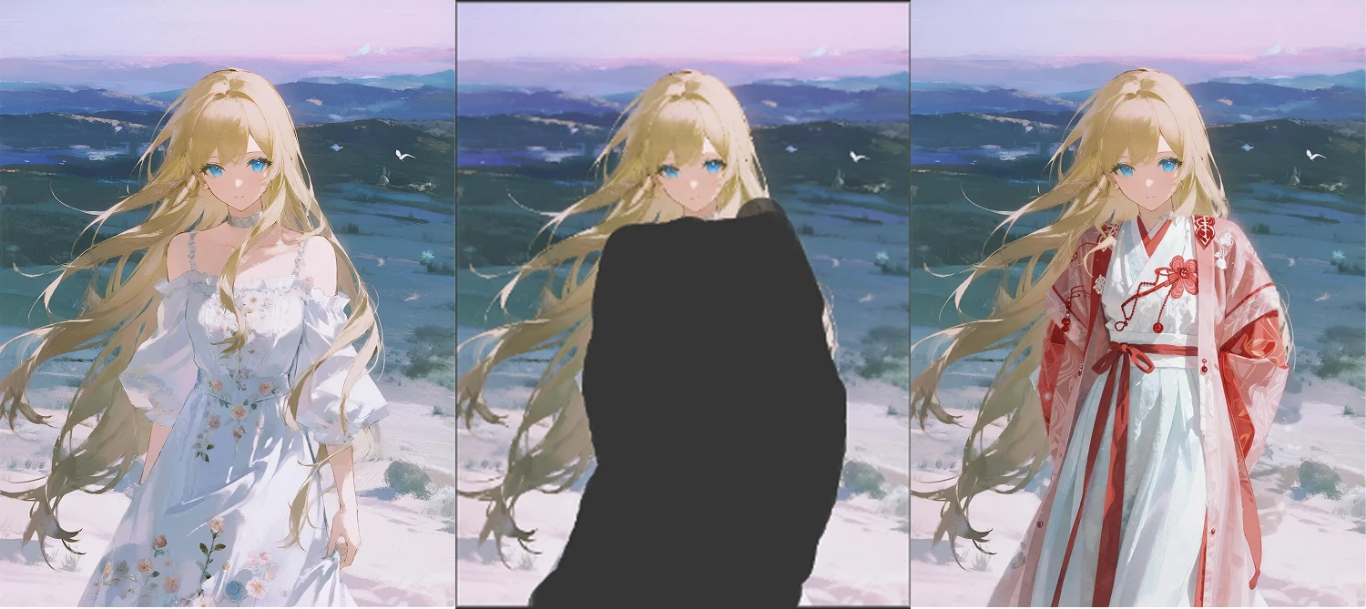 In inpainting, the denoise magnitude is adjusted according to the degree of repainting. The prompts should be written as detailed as possible.