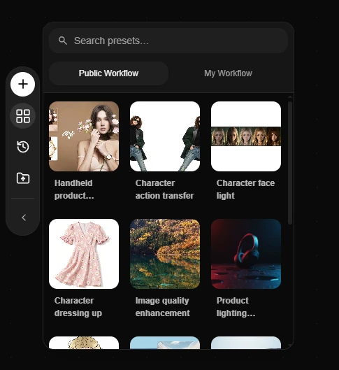 - Public Workflow: A collection of mature workflows from official sources and community pros, covering popular trends such as: