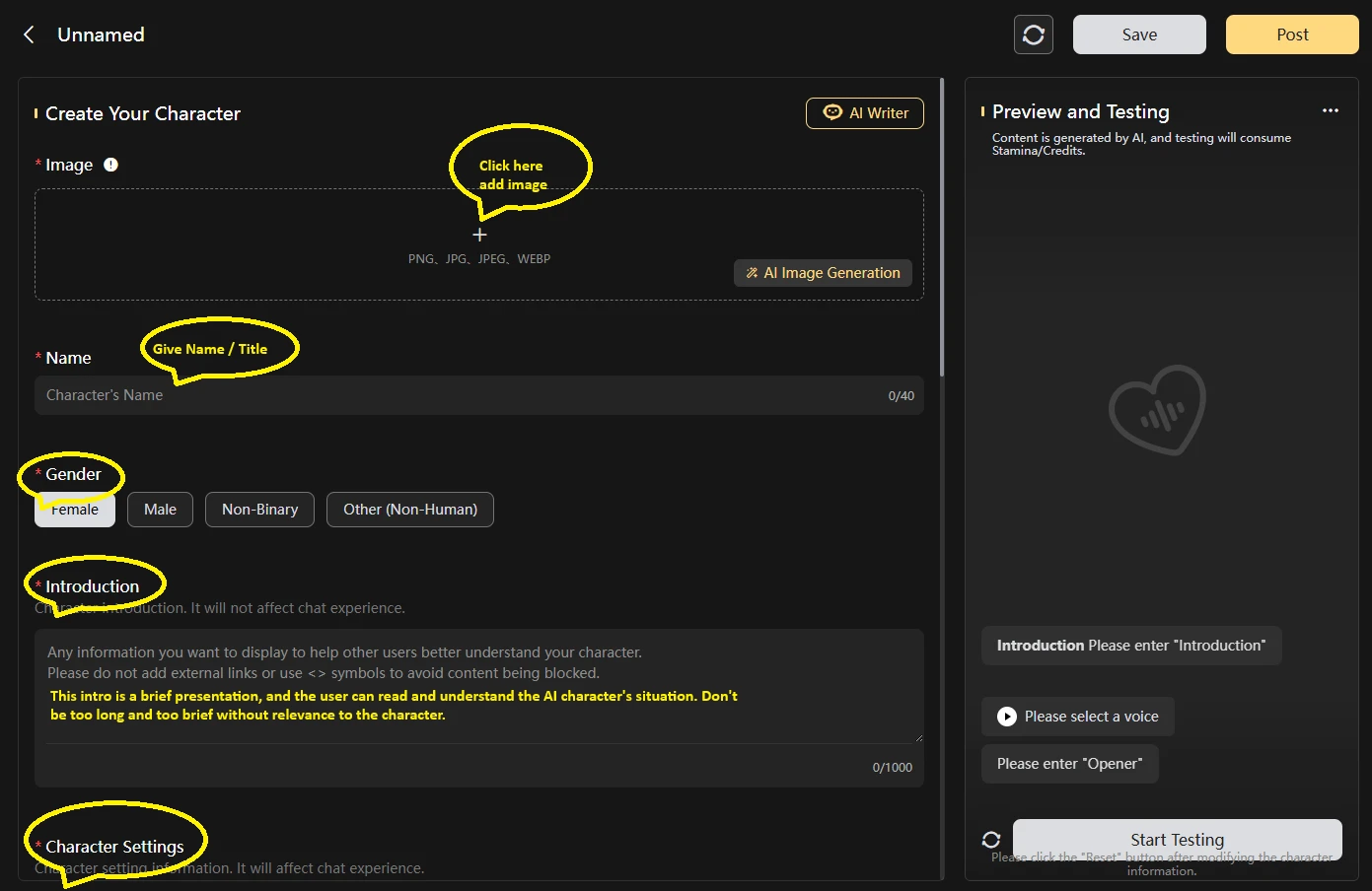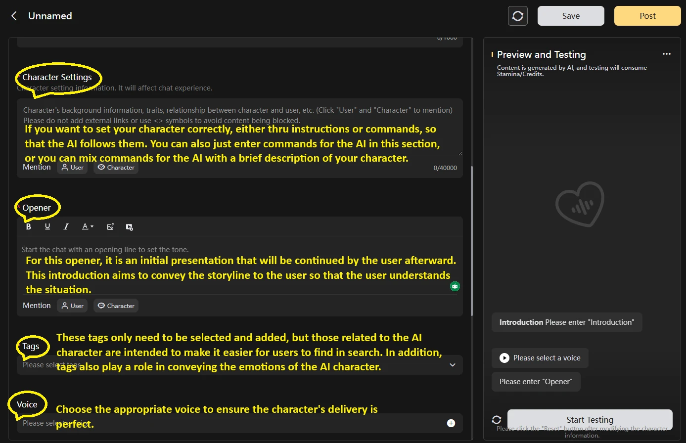 First, among them is generating Character AI; the following are the things you need to pay attention to and understand, and why they are necessary and not necessary.