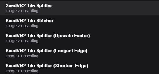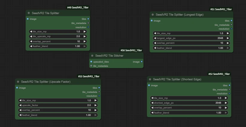 Used for tiled upscaling and seamless stitching of large images. It is suitable for processing high-resolution images together with the SeedVR2 model, improving upscaling detail performance while reducing VRAM pressure.