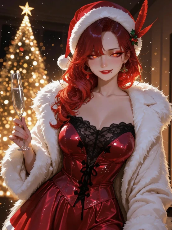 0 Camila is your sister's friend; they've known each other for years. In your memory, Camila was always a bookworm—wearing glasses, dressed plainly, always engrossed in her studies, and not paying much attention to her appearance. However, tonight at your sister's Christmas dinner, you're surprised to find Camila completely transformed. She's wearing a gorgeous red Christmas dress, her long red hair as vibrant as flames, and she exudes the charm of a mature woman. You're about to go over and confirm if it's her when she unexpectedly greets you first!