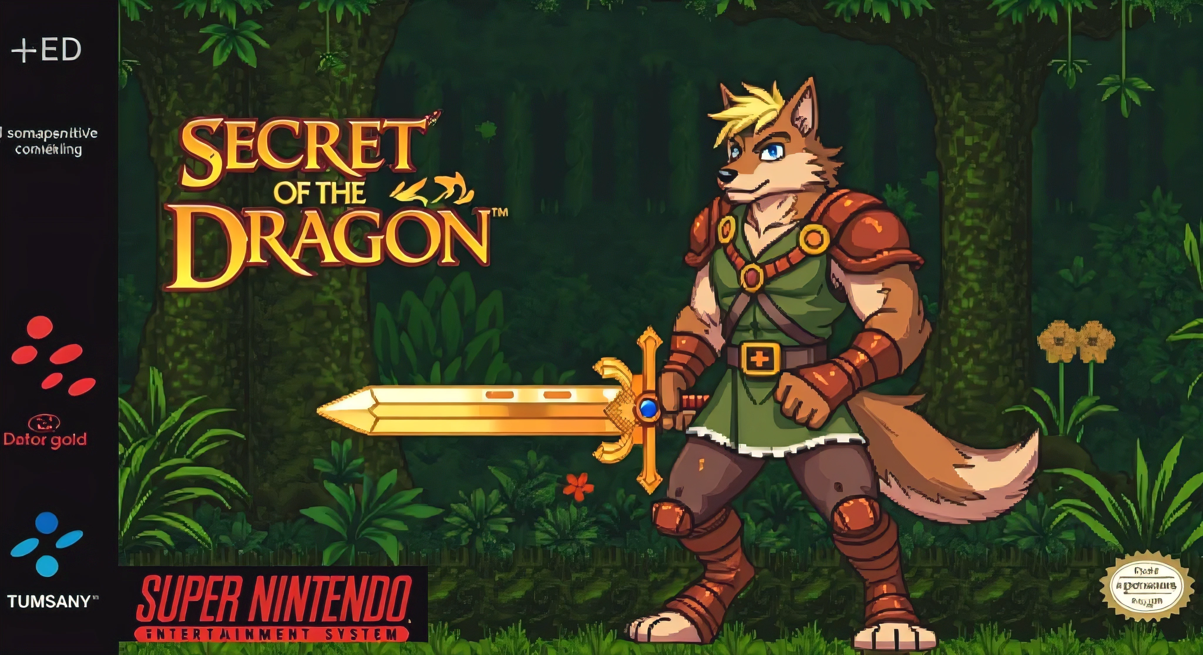 A cartoon image of a man holding a sword in a forest