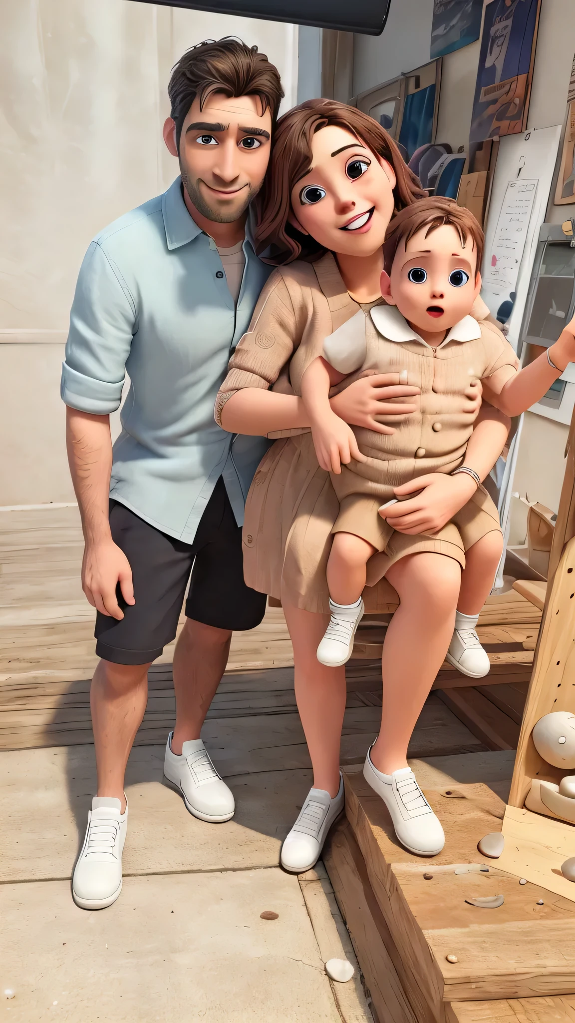 Arafed man and woman posing with a baby in front of a fake life - size doll