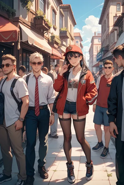 Rebecca from cyberpunk,night ,neon light , In a crowd of people