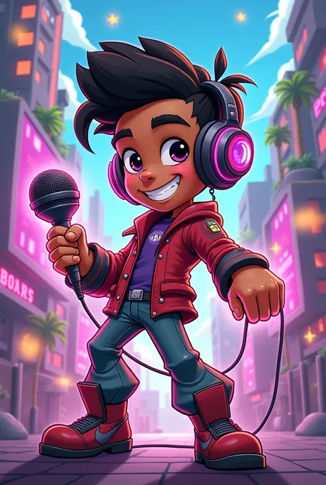 Darnell, solo, smile, simple background, 1boy, holding, standing