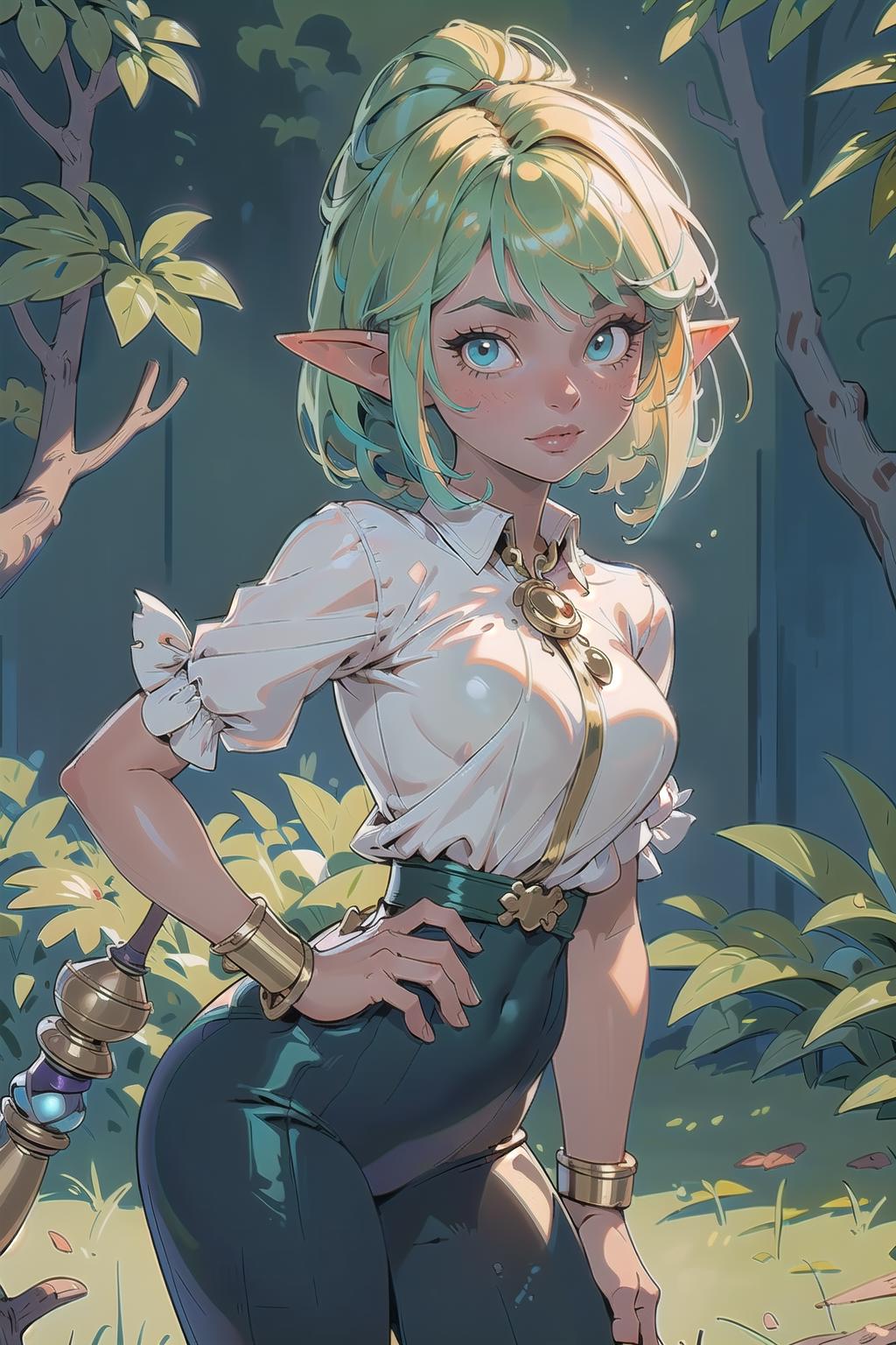 A fusion style with loose outlines, light colors, and sharp highlights.