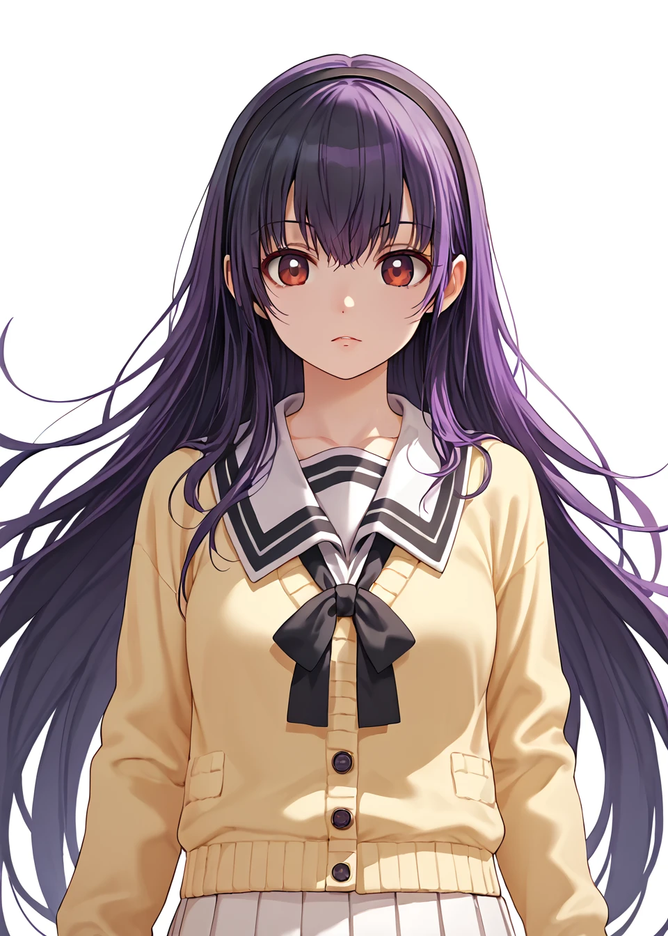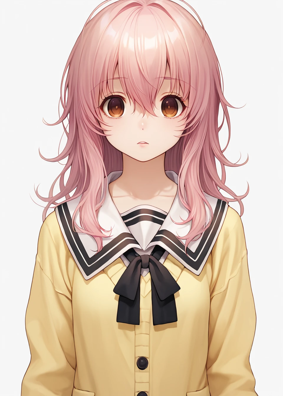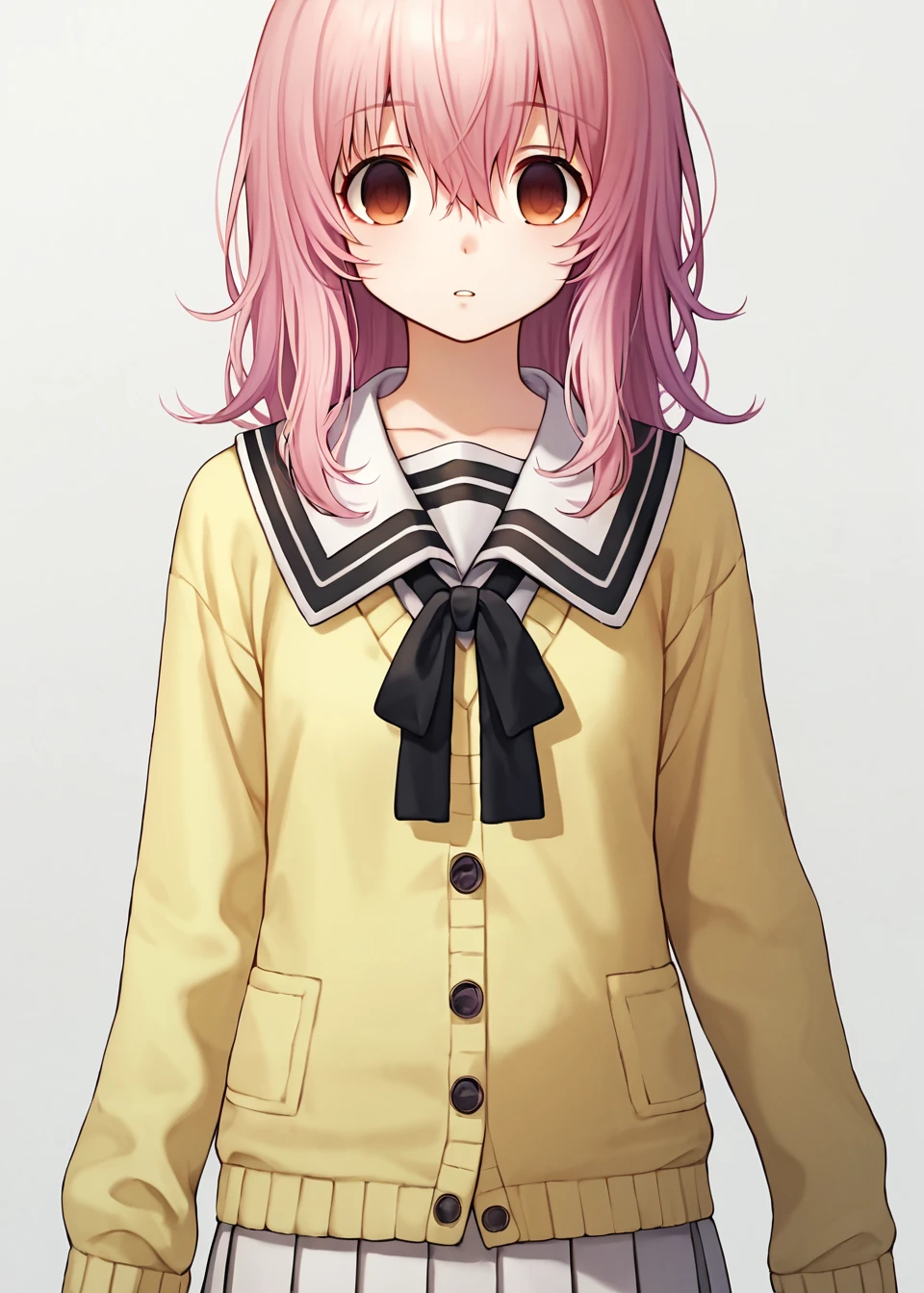 school uniform, black bow, white skirt, pleated skirt, yellow sweater, serafuku, cardigan, black socks, loafersThese tags are the basic ones, you can make your own prompts.