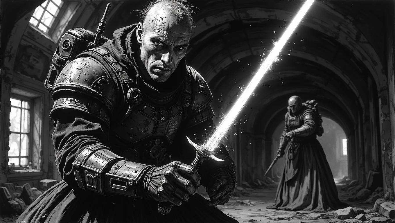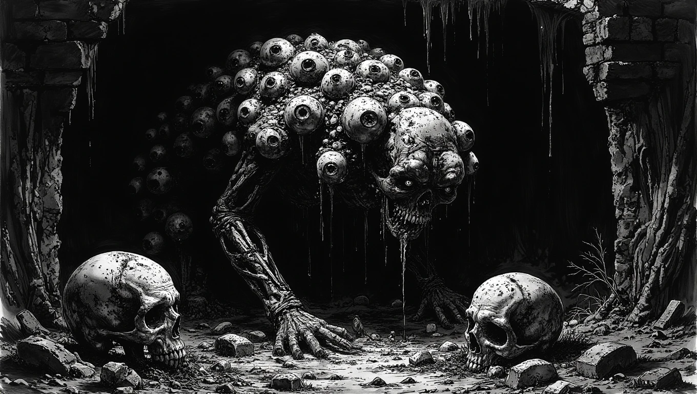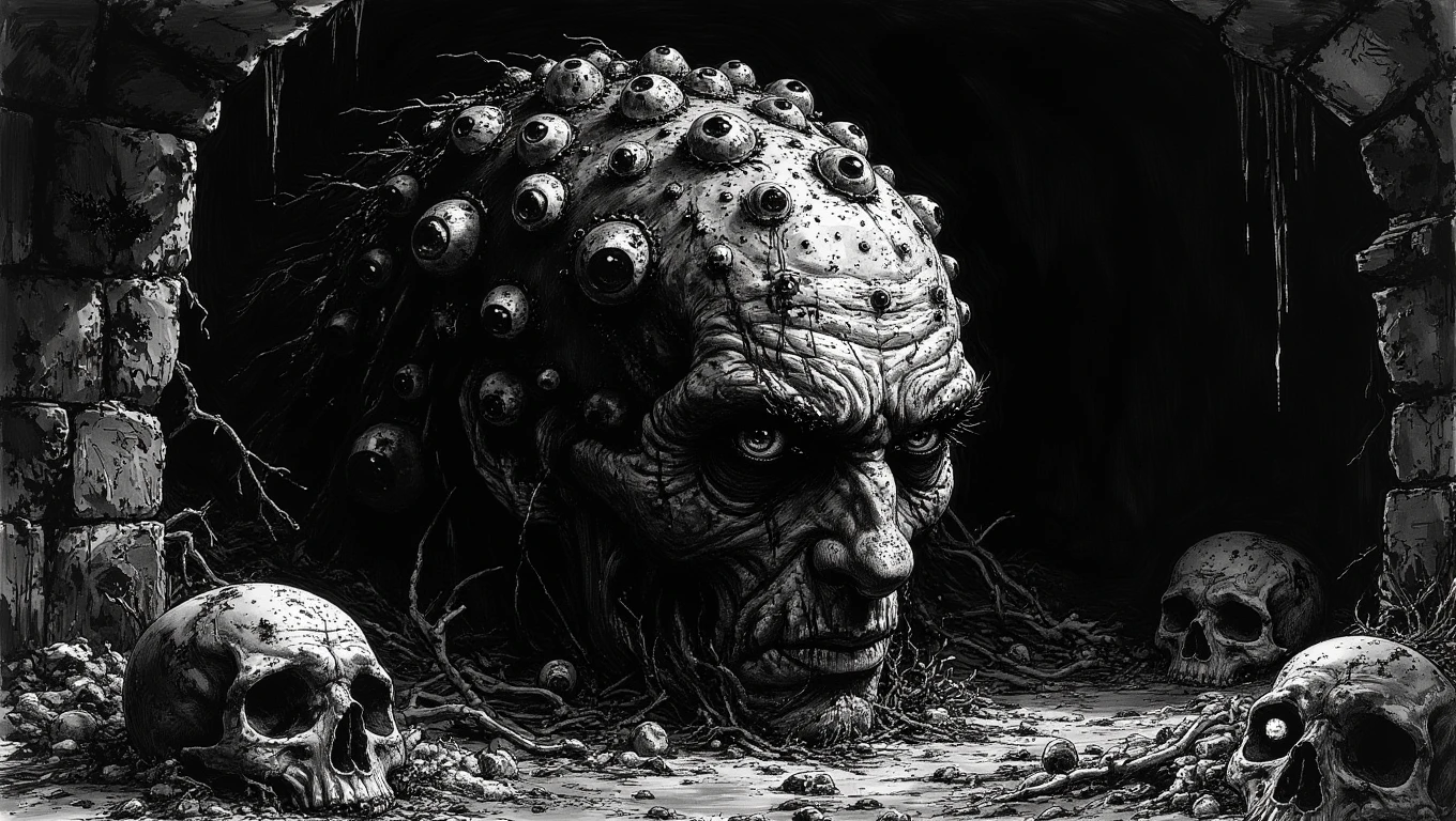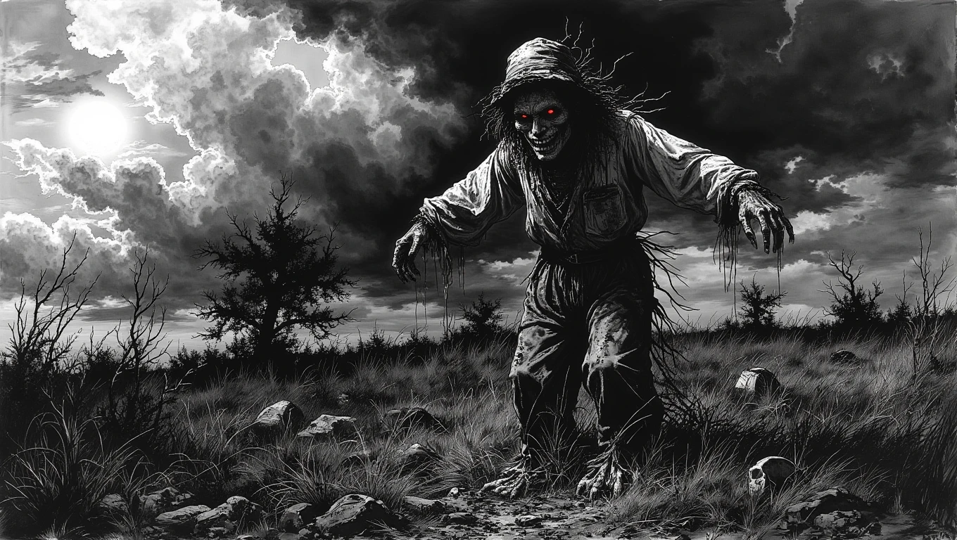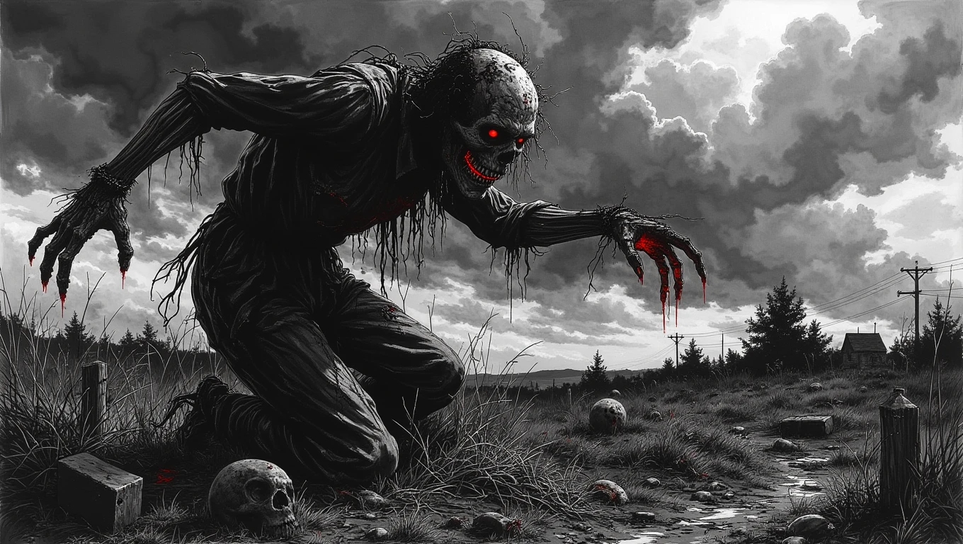 The "Wraith B&W" style is characterized by a dark and unsettling aesthetic, rendered entirely in black and white. It uses extreme contrasts to create a sinister and surreal atmosphere. The lines are sharp and detailed, with a strong focus on rough textures and organic surfaces, evoking a sense of decay and mystery. The lighting is dramatic, with deep shadows that enhance the menacing mood. The style evokes feelings of terror and dread, drawing from Gothic art and horror iconography, where every detail contributes to a pervasive sense of unease.