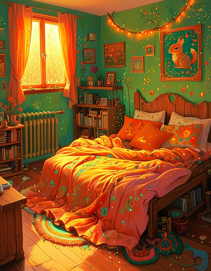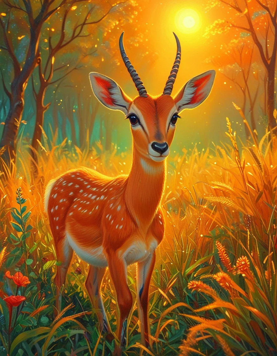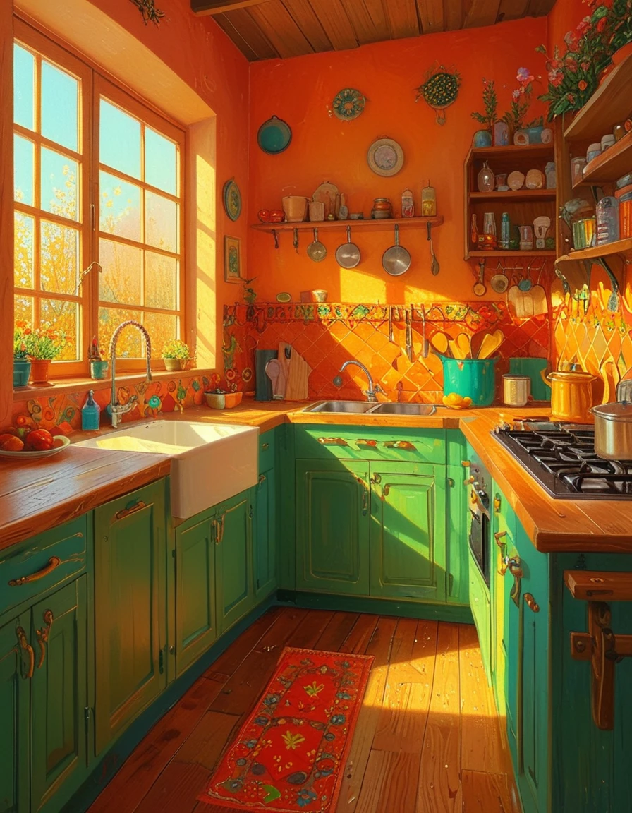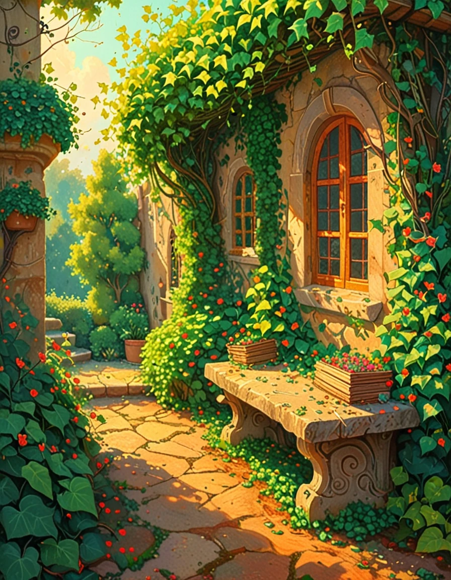 This style often showers scenes with warm light mixed with shadows. It can resemble golden hour light or bright sunny days with strong shadows. It can give characters backlight or rim lighting, pour sunlight through windows, dapple light through forests, or make light sources give nearby surfaces a warm glow.