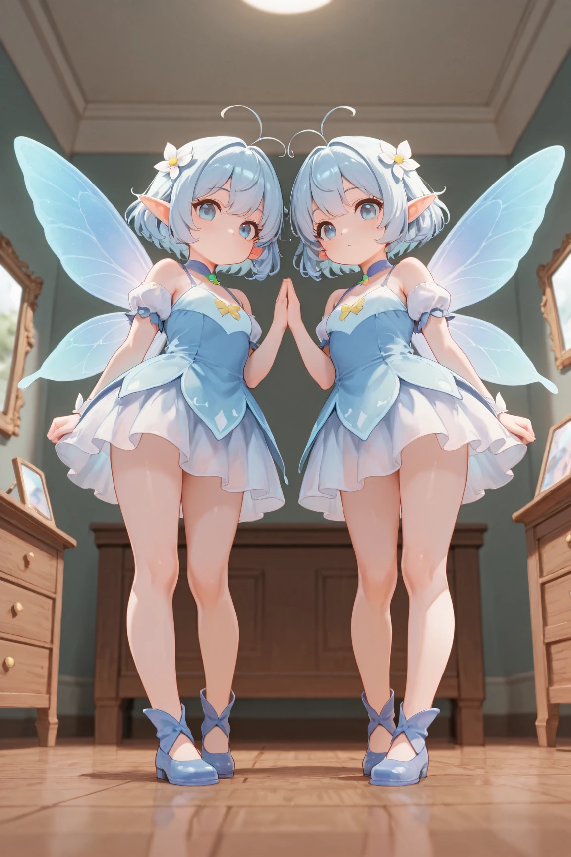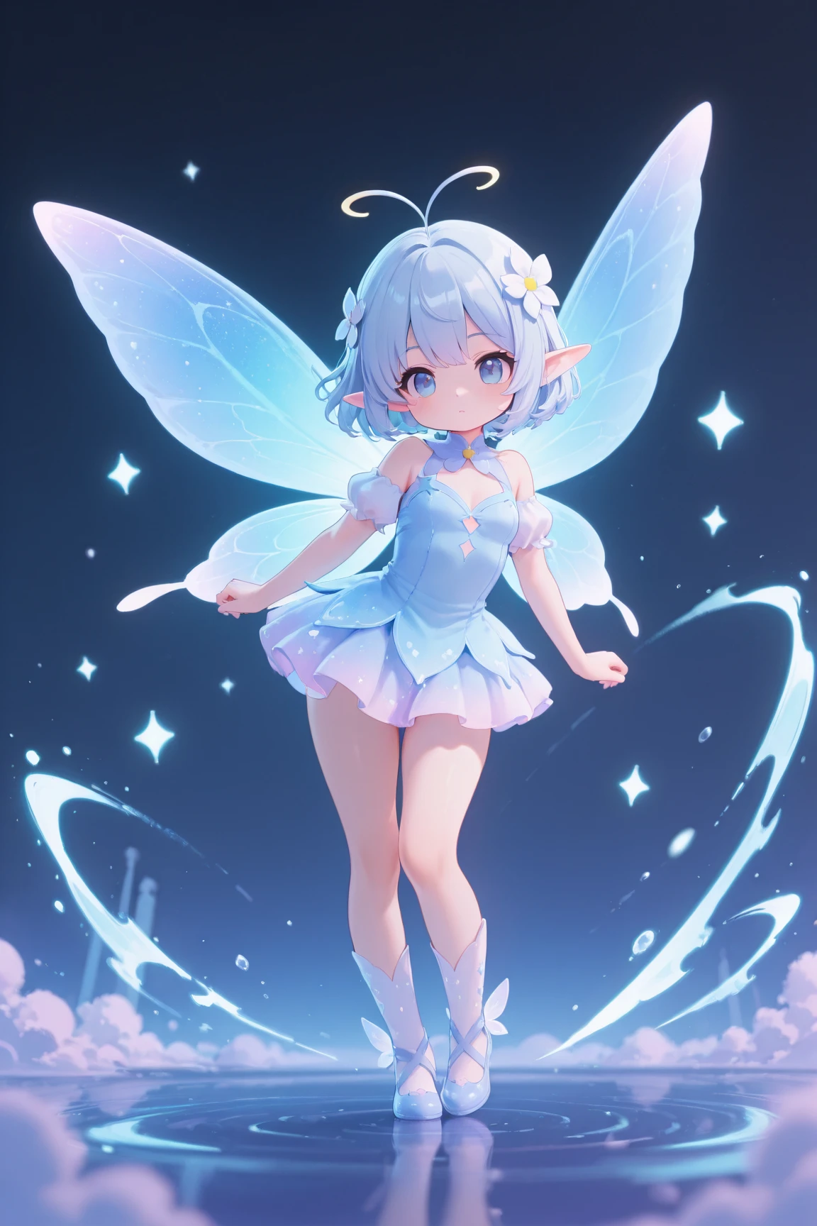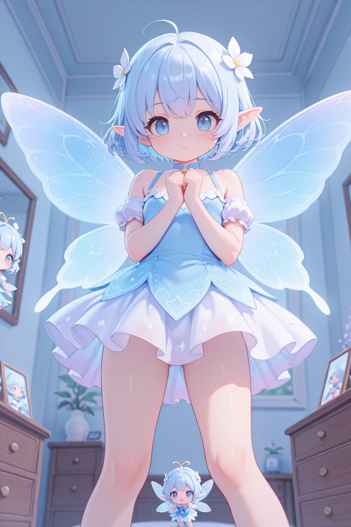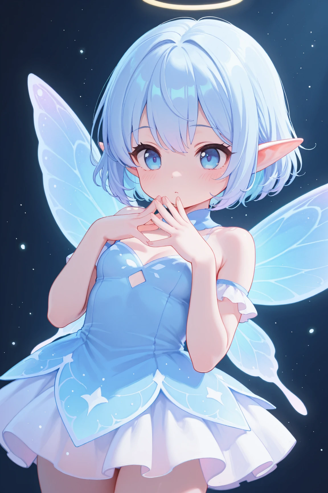 repochi, light blue hair, short hair, fairy wings, fairy, fairy girl, (fairy girl), repochi's clothes, fairy clothes, fairy dress