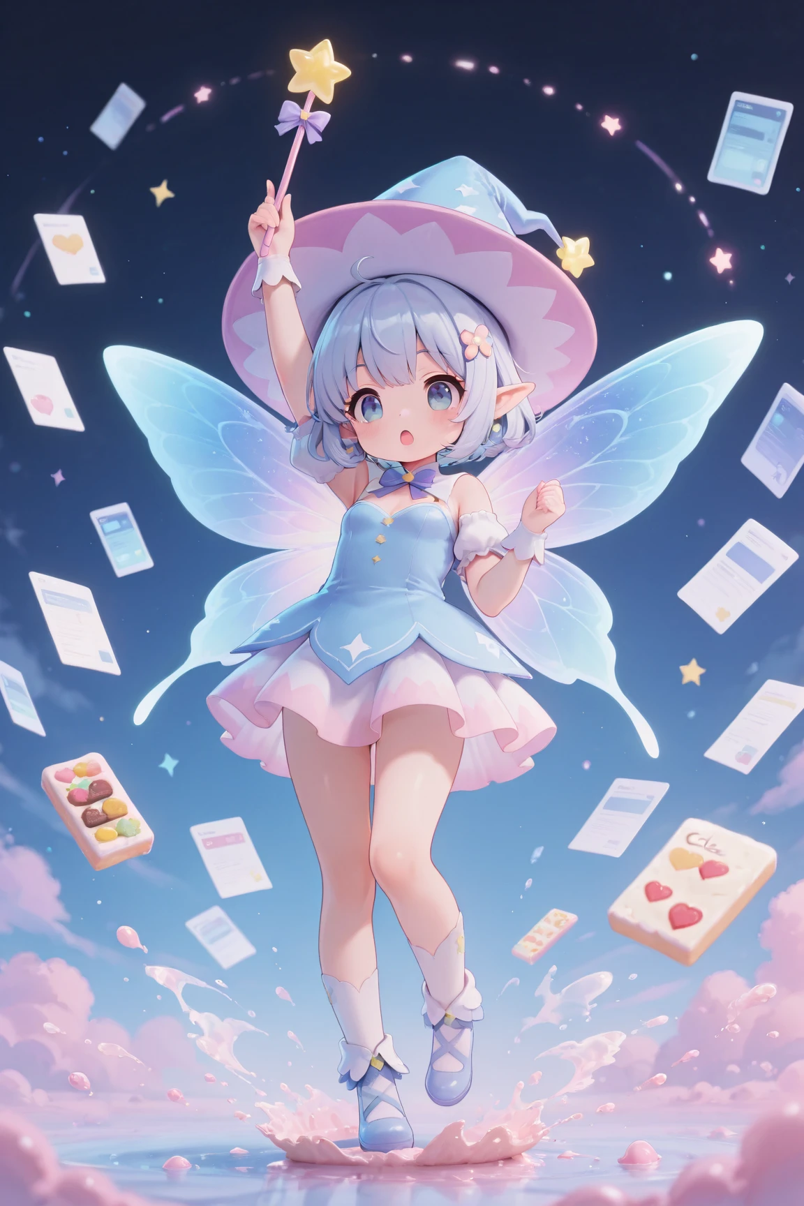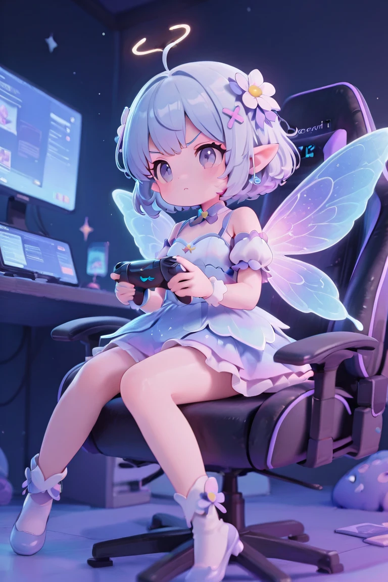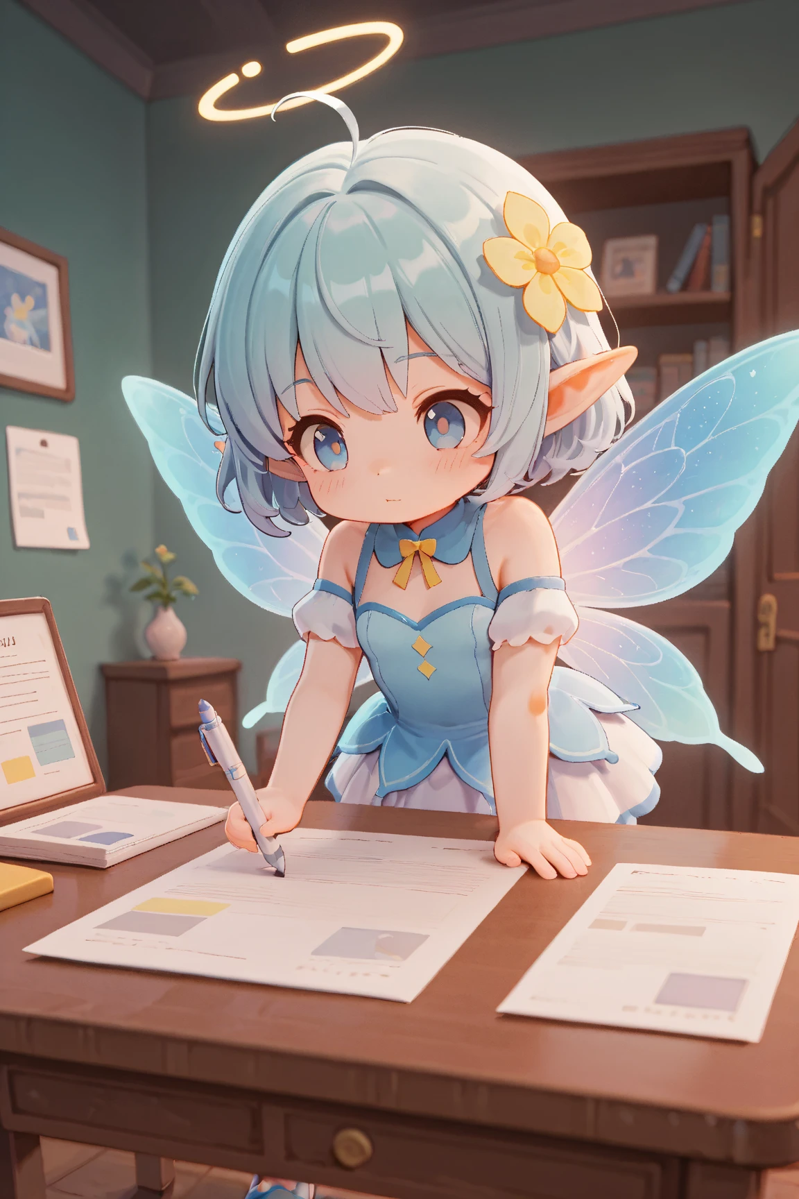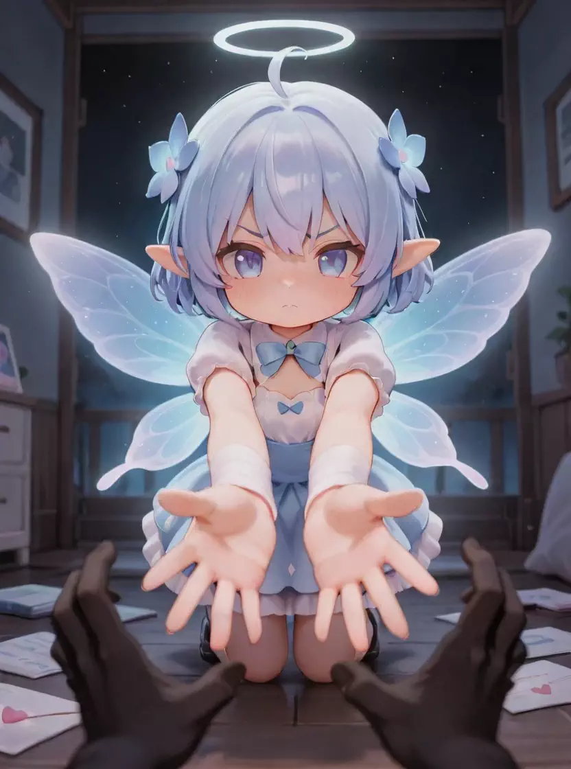 repochi, light blue hair, short hair, fairy wings, fairy, fairy girl, (fairy girl), repochi's clothes, fairy clothes, fairy dress