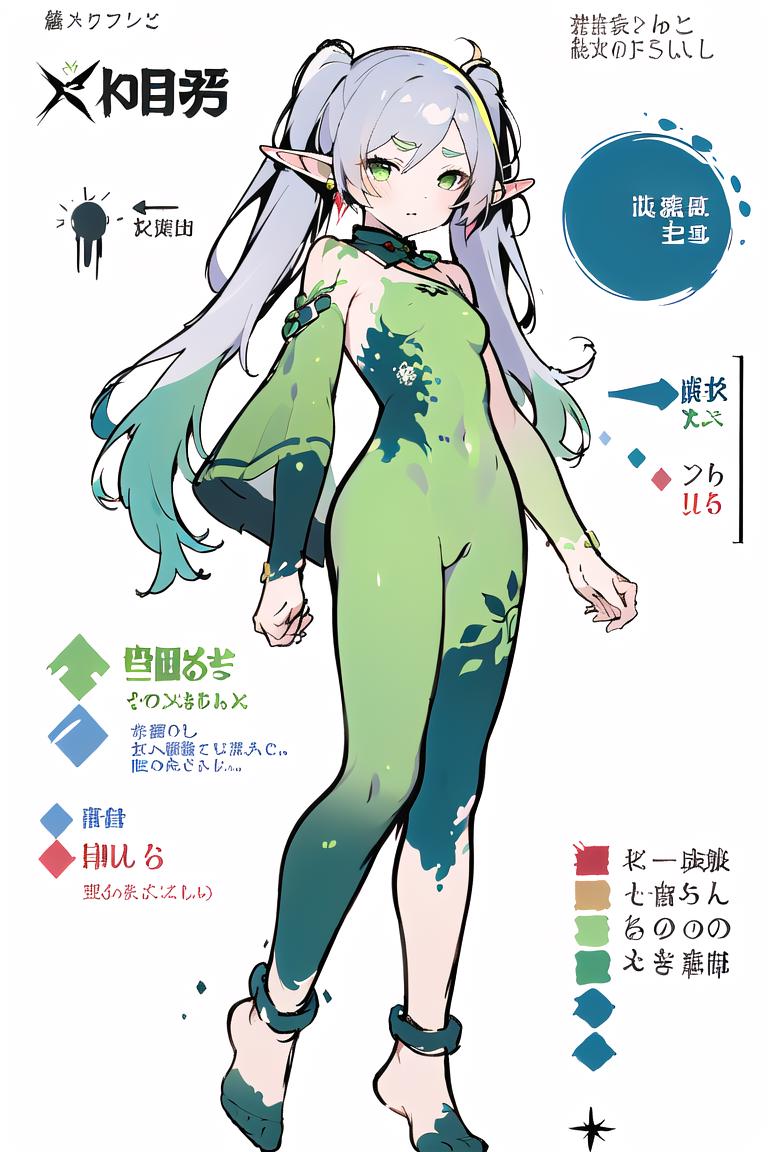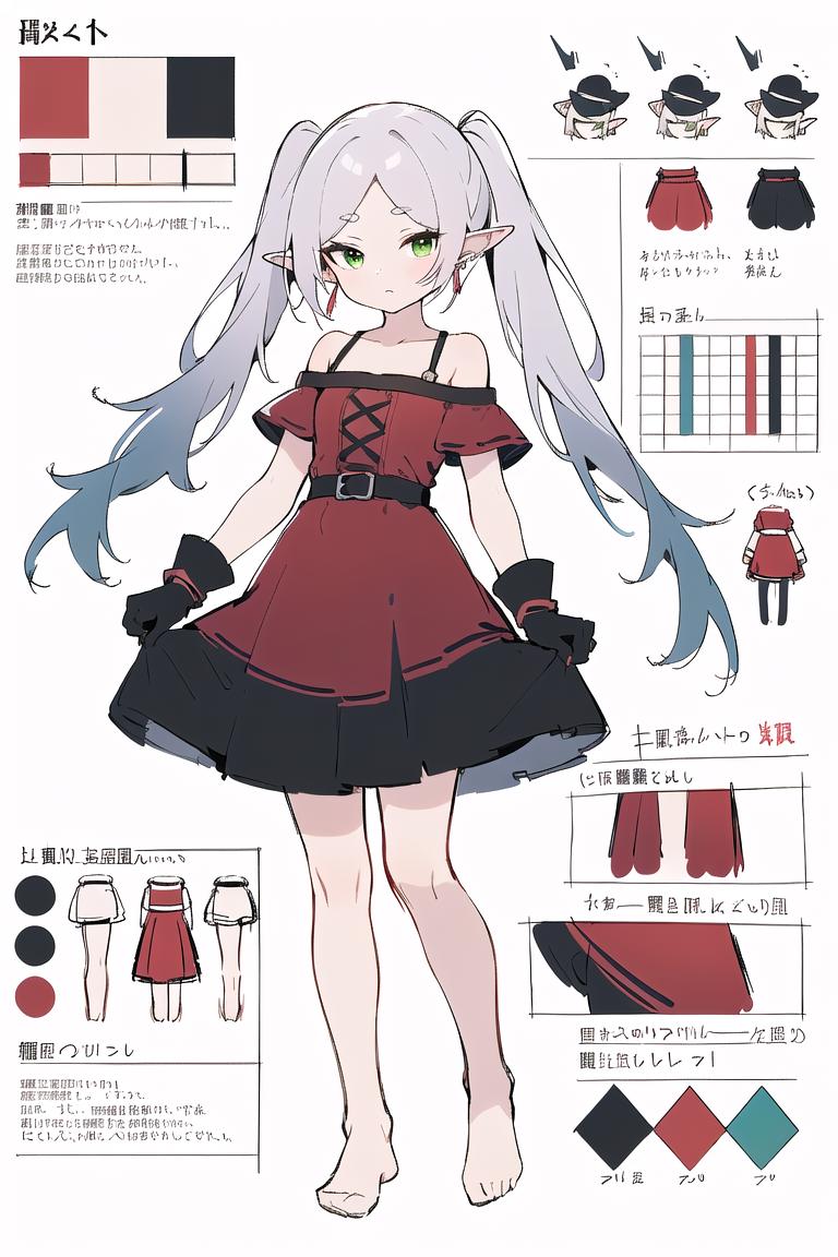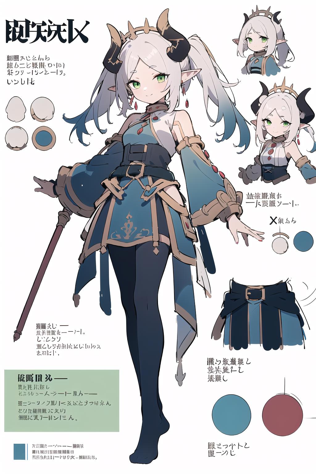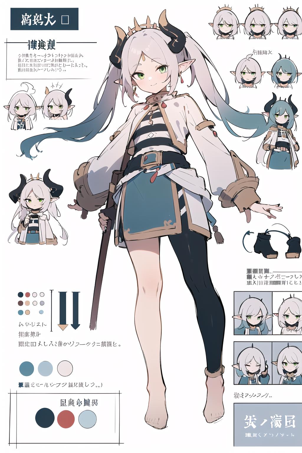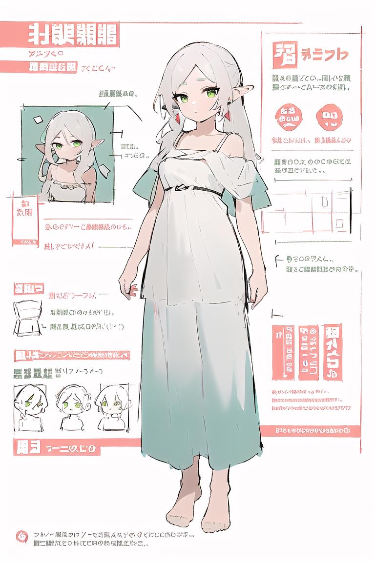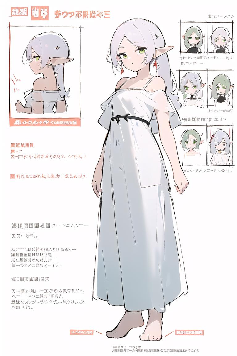 芙莉莲:fll, twintails, 1girl, pointy ears, round face,white hair, green eyes, elf, pantyhose, long hair, earrings, black pantyhose, white capelet, long sleeves, dress,