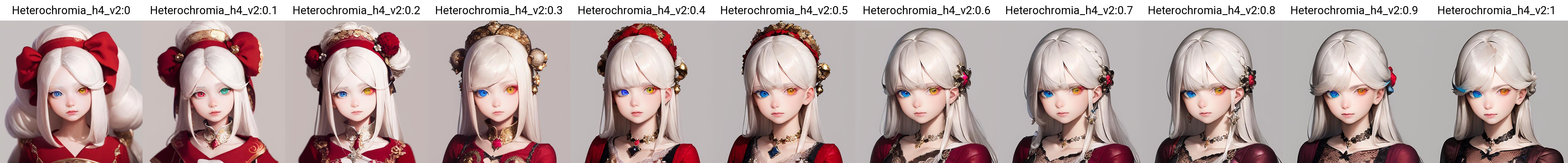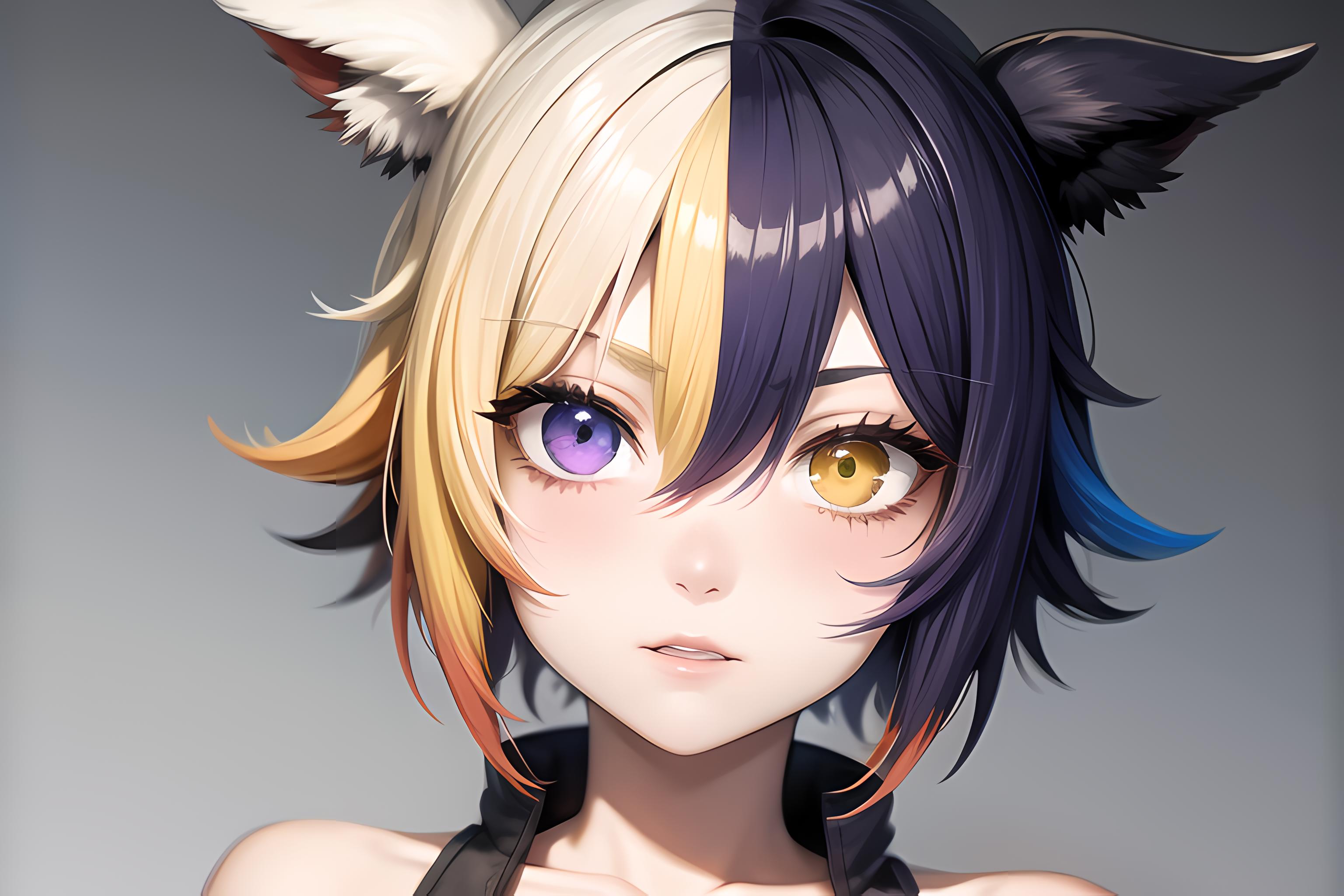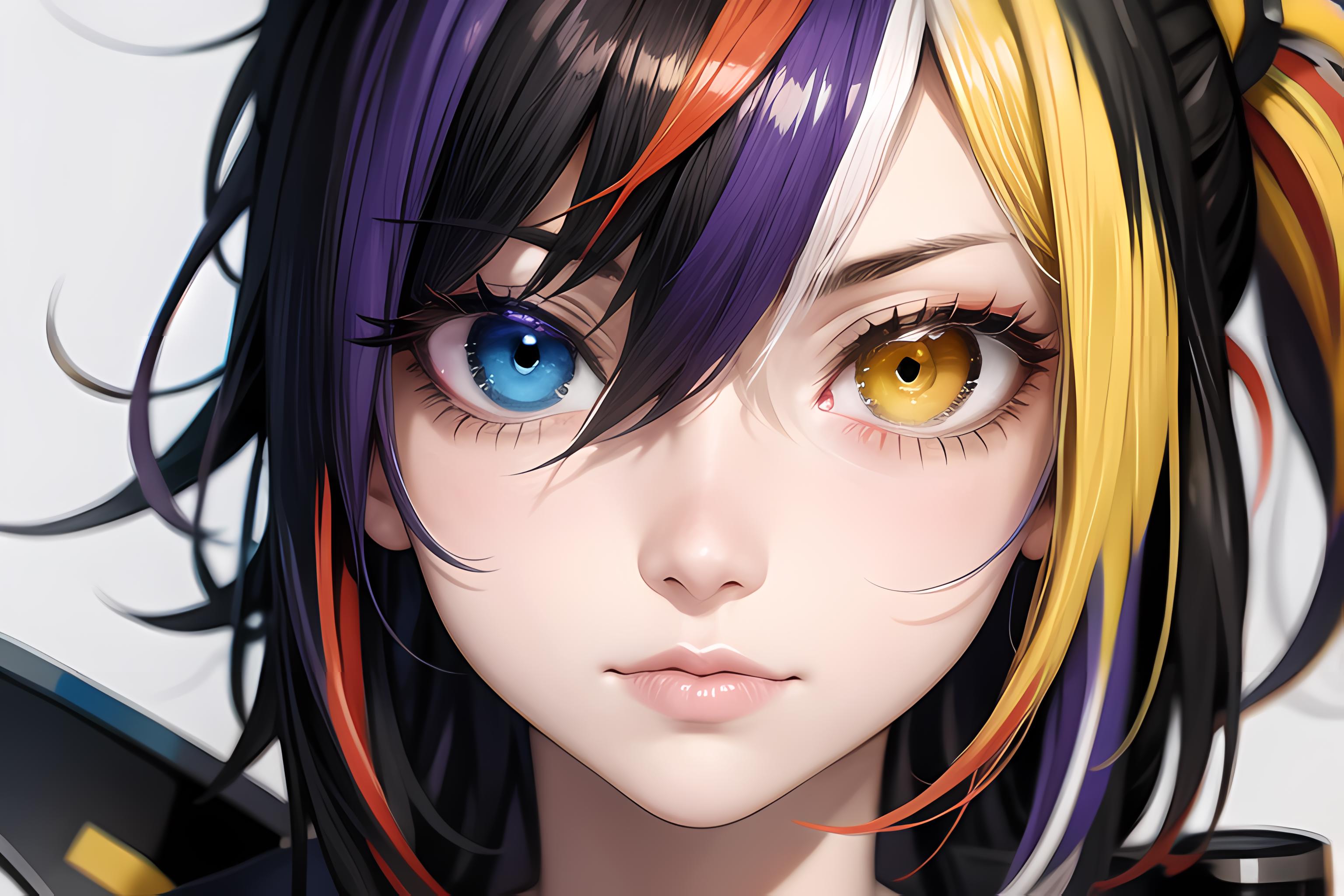 A Fun side effect of me adding more colors to the mix was a nifty rainbow eye. I have yet to reproduce it by prompt, however you might get lucky. Occasionally produces reflections and artefacts within the iris, comes off looking a bit reflective