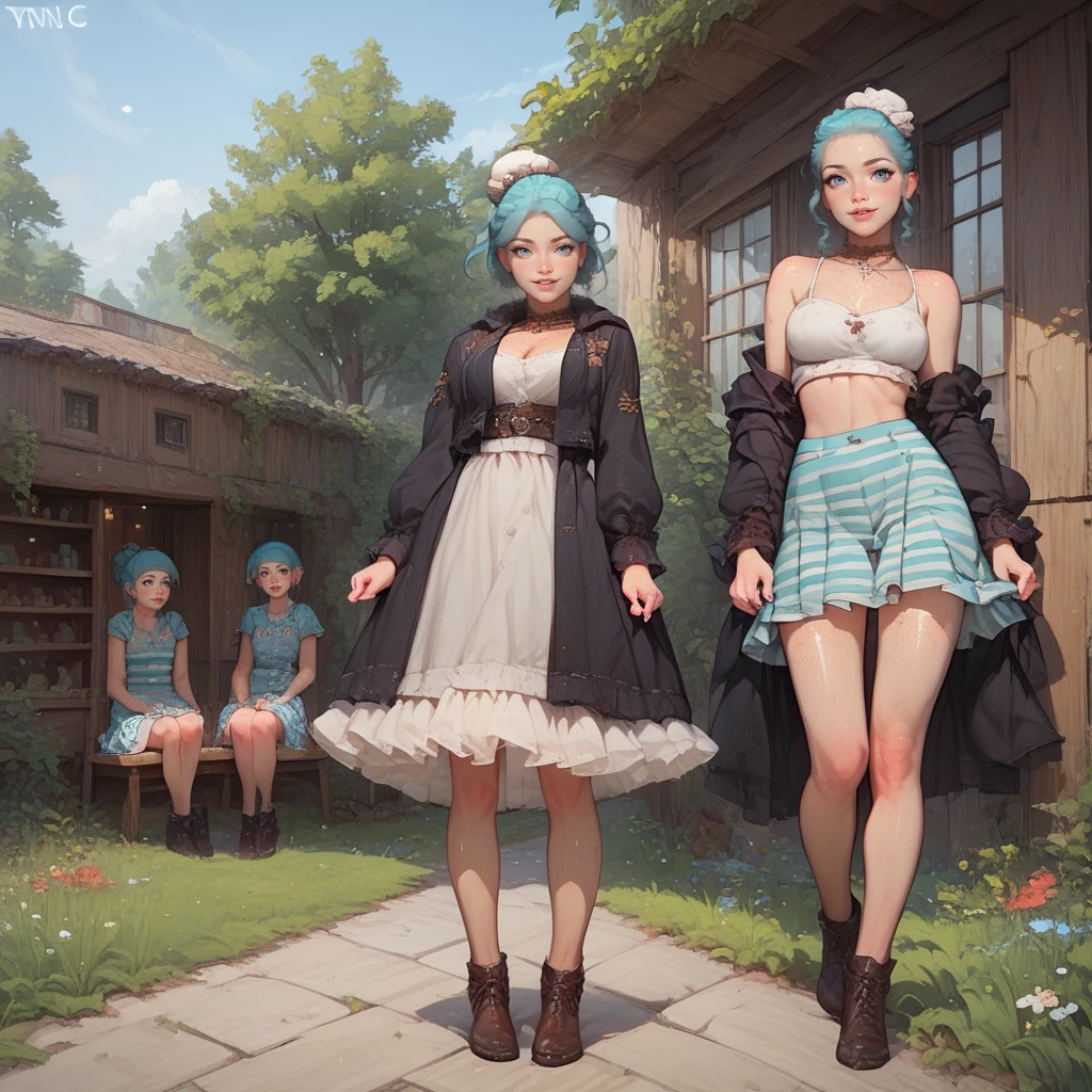 (second girl clothed, sfw:1.3),