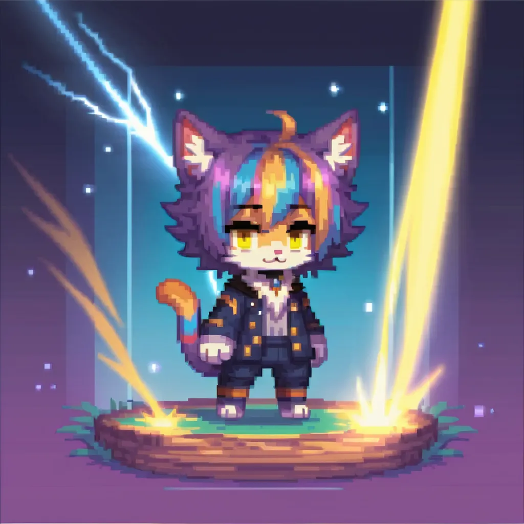 Besides converting photo to pixel art characters, this image to pixel converter also generates lower-resolution fantasy zones with well-lit clean backgrounds and fitting details to highlight your characters. It's designed to match the vibe of your character - whether it's a heroic fantasy, a mysterious sci-fi setting, or a casual scene.