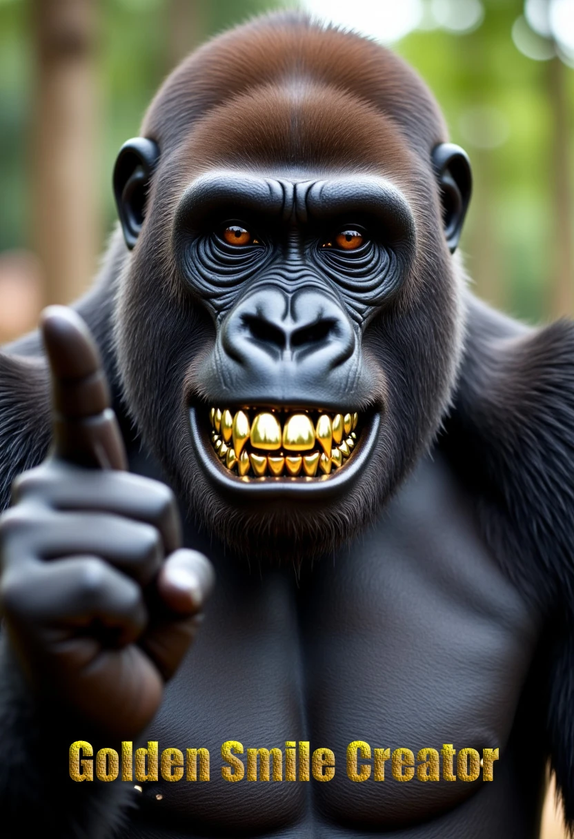 Flux App: Submit your photo, and with one click, transform it into a smiling character with gold teeth—simple and fast!