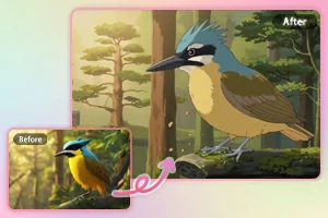 Ghibli photo filter lets you turn your furry friends into cute anime characters in the Hayao Miyazaki's movies. Effortlessly give your pet portraits a magical makeover. Ideal for pet lovers looking to add a whimsical twist to pet images. You can share these magical creations on social media or preserve them as delightful keepsakes.
