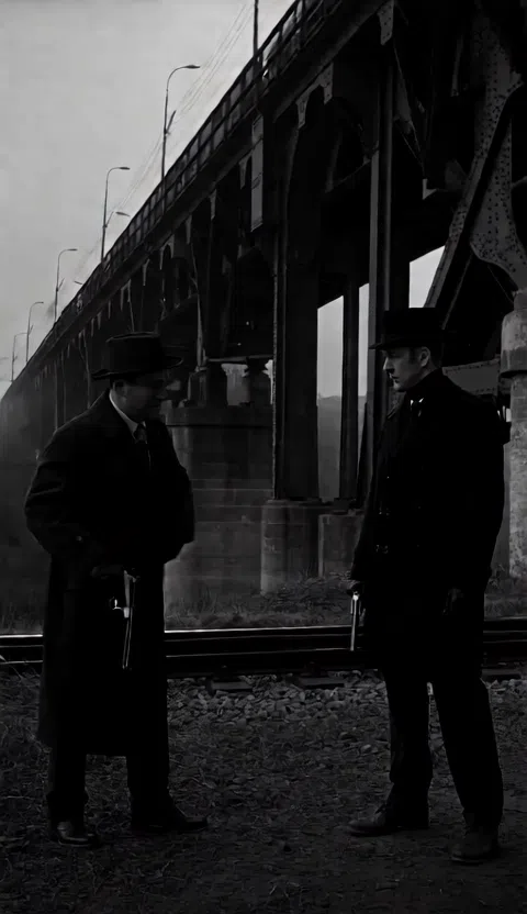 Transform your footage into a timeless noir masterpiece — deep shadows, high contrast lighting, and vintage textures create a mysterious, moody, and cinematic black-and-white atmosphere straight out of a classic detective story.