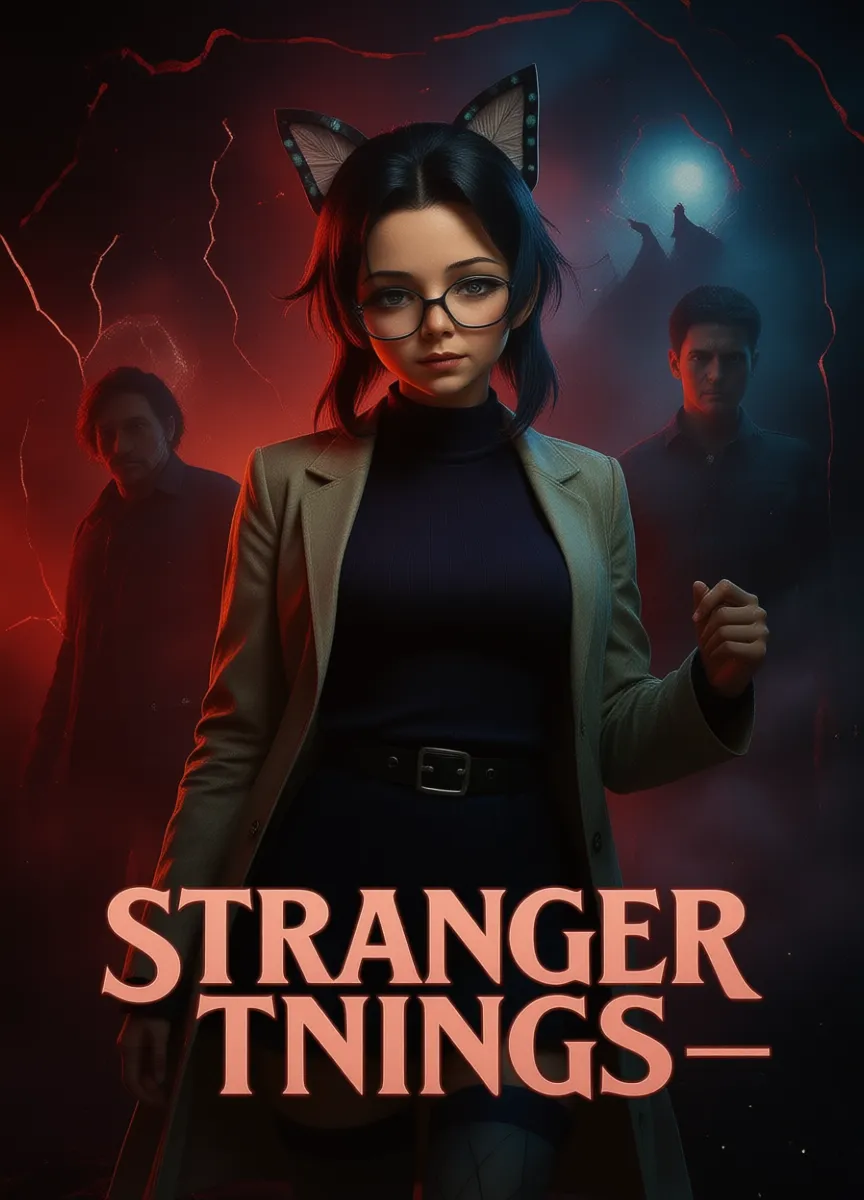 Upload a portrait and generate a stylized poster featuring yourself together with Stranger Things characters.